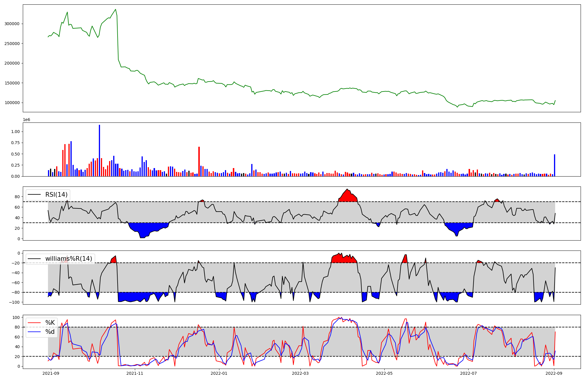 | RSI | Williams %R | stochastic(%K) | |