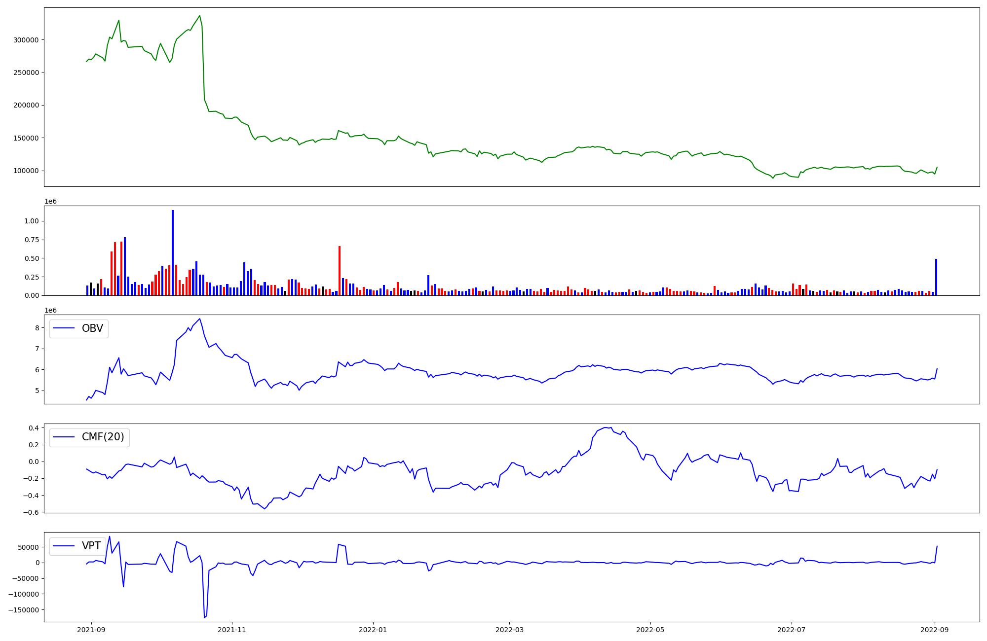 | OBV | CMF | VPT | |