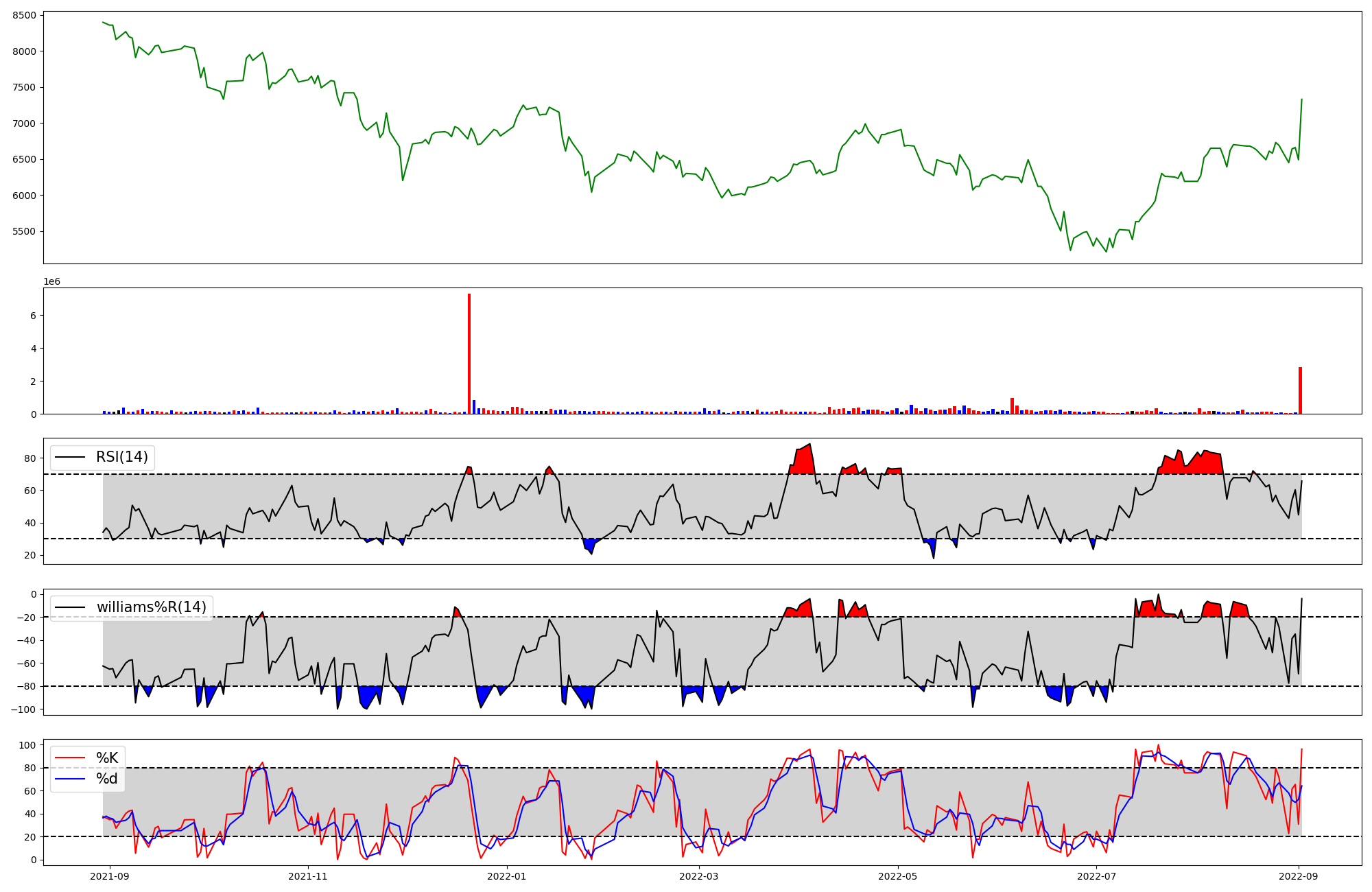 | RSI | Williams %R | stochastic(%K) | |