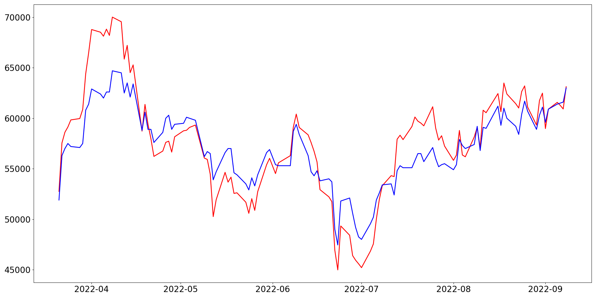 [ - : 실제값(종가) / - : 예측값(종가) ]