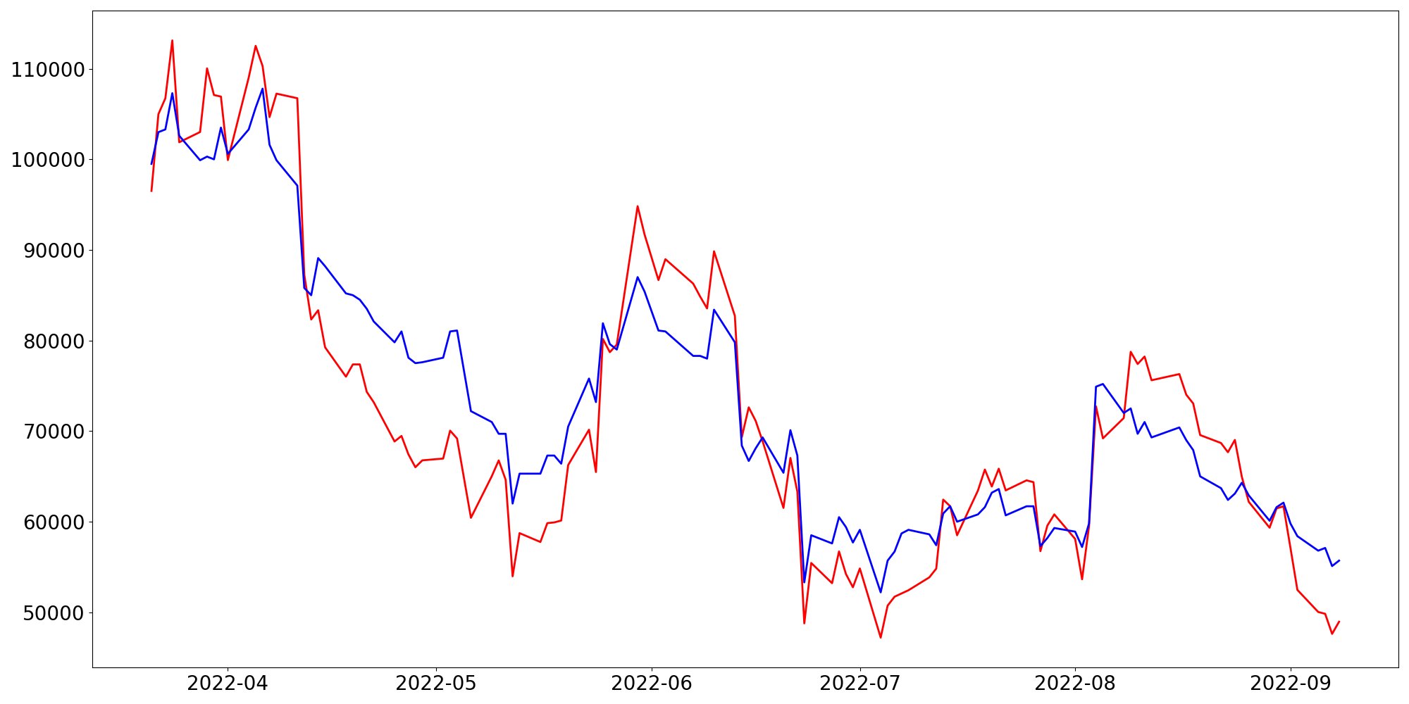 [ - : 실제값(종가) / - : 예측값(종가) ]