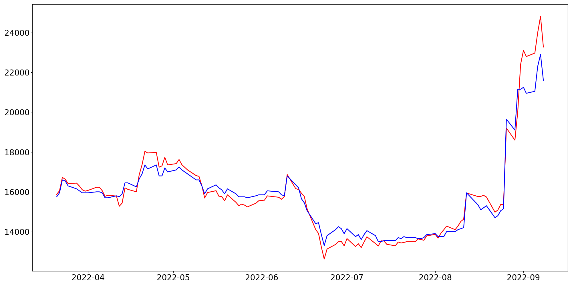 [ - : 실제값(종가) / - : 예측값(종가) ]