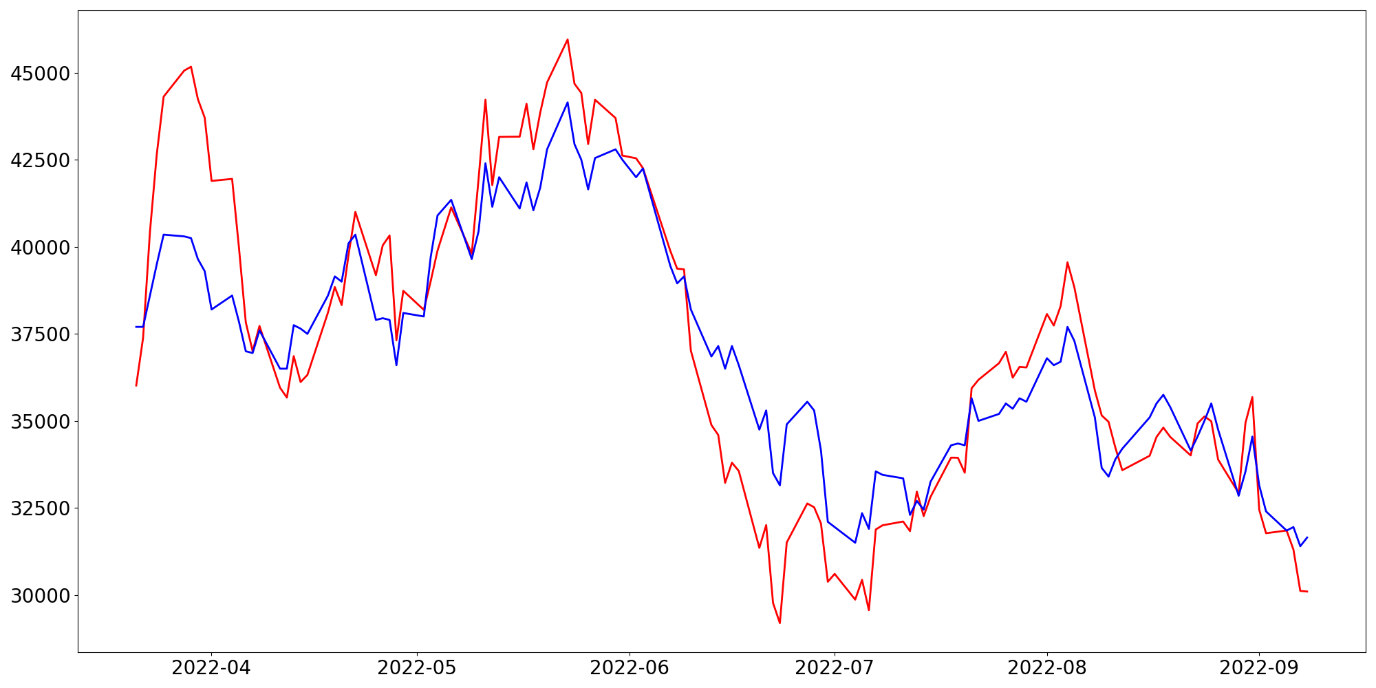 [ - : 실제값(종가) / - : 예측값(종가) ]
