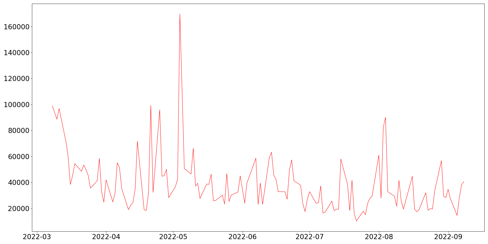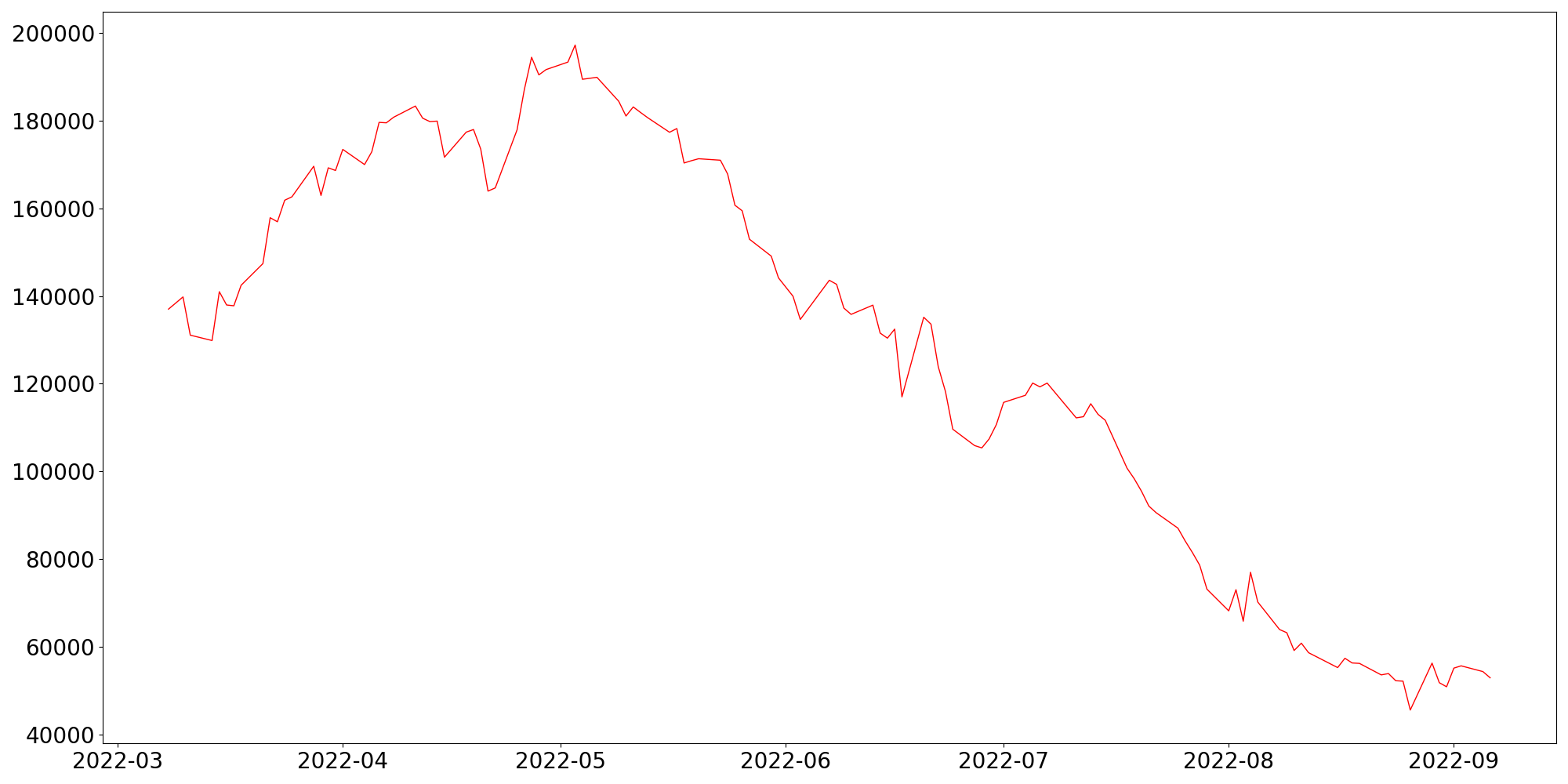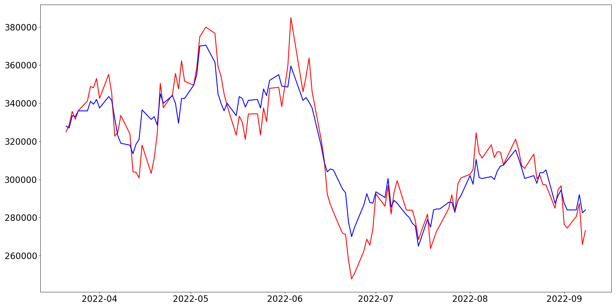 [ - : 실제값(종가) / - : 예측값(종가) ]