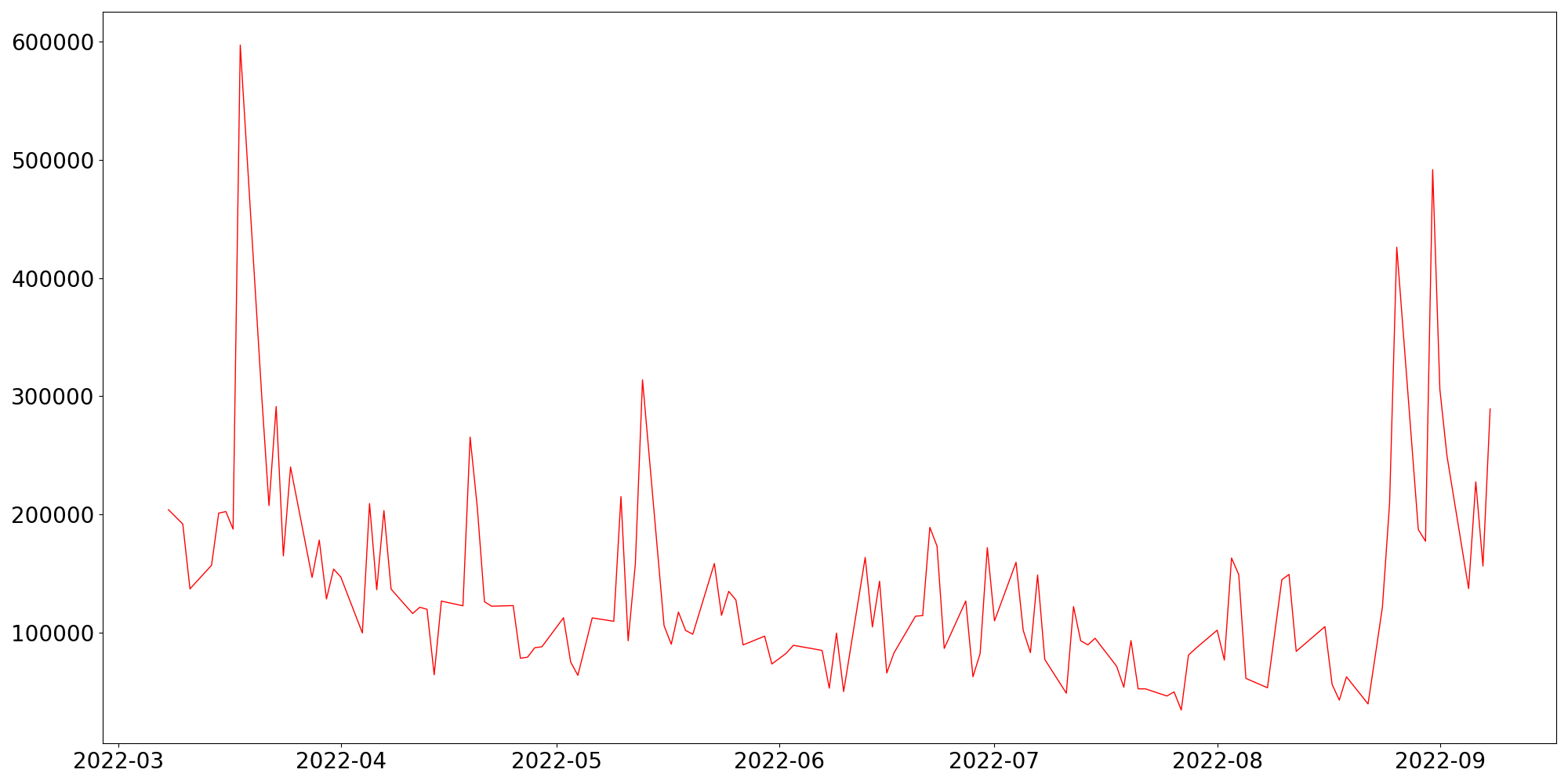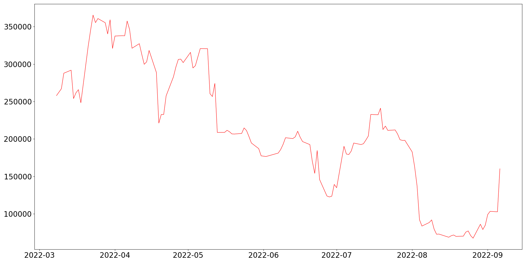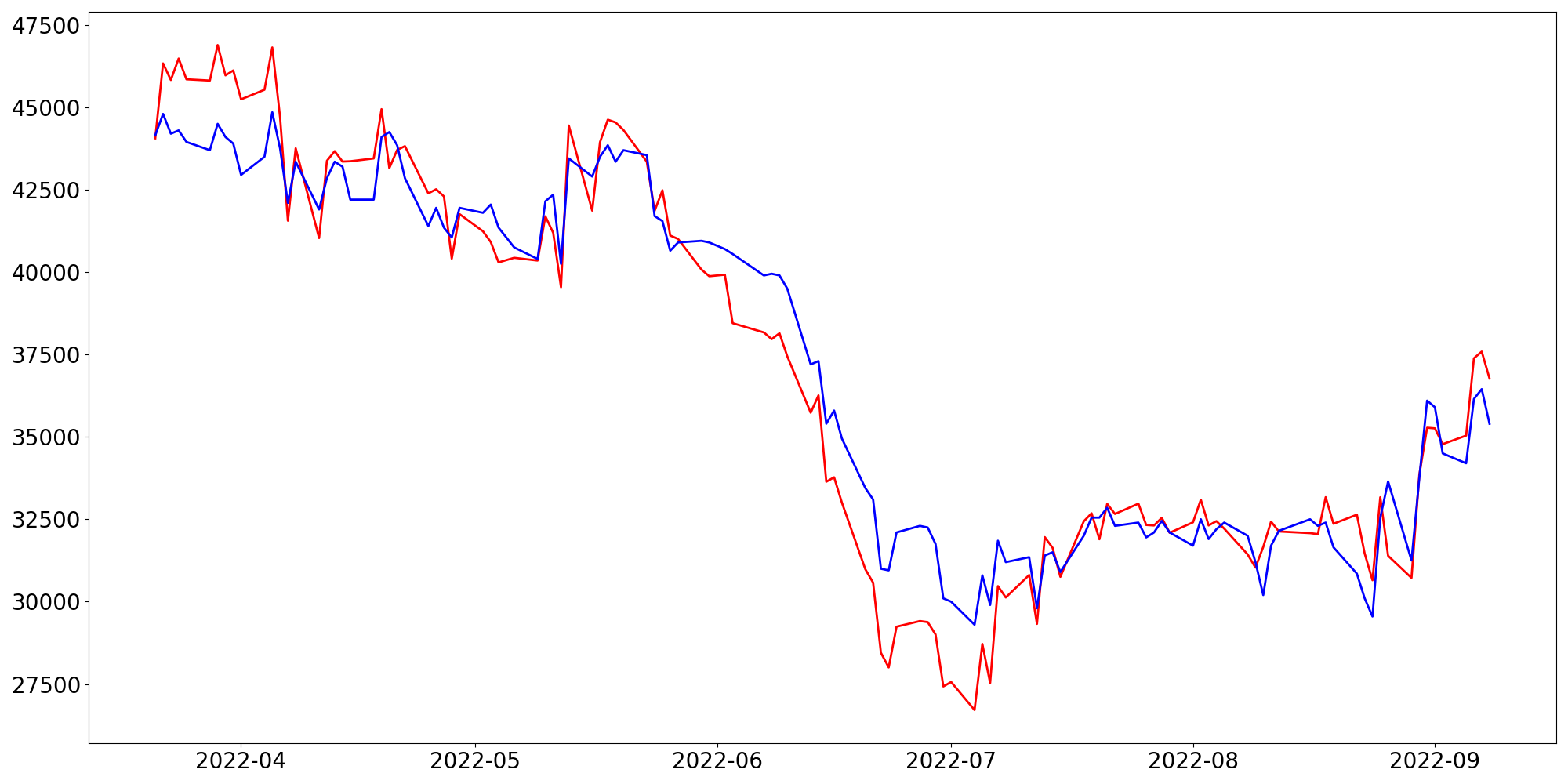 [ - : 실제값(종가) / - : 예측값(종가) ]