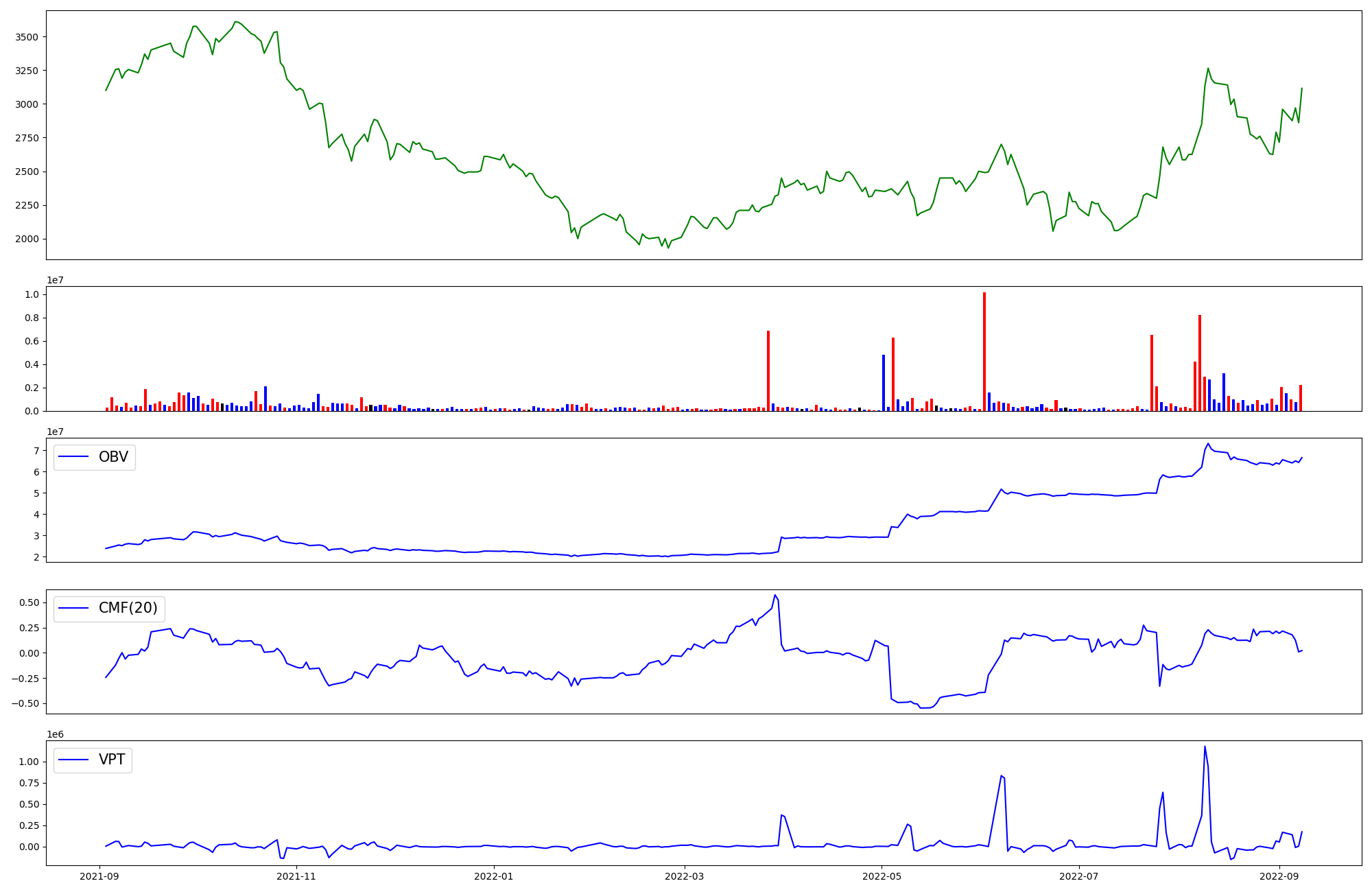 | OBV | CMF | VPT | |