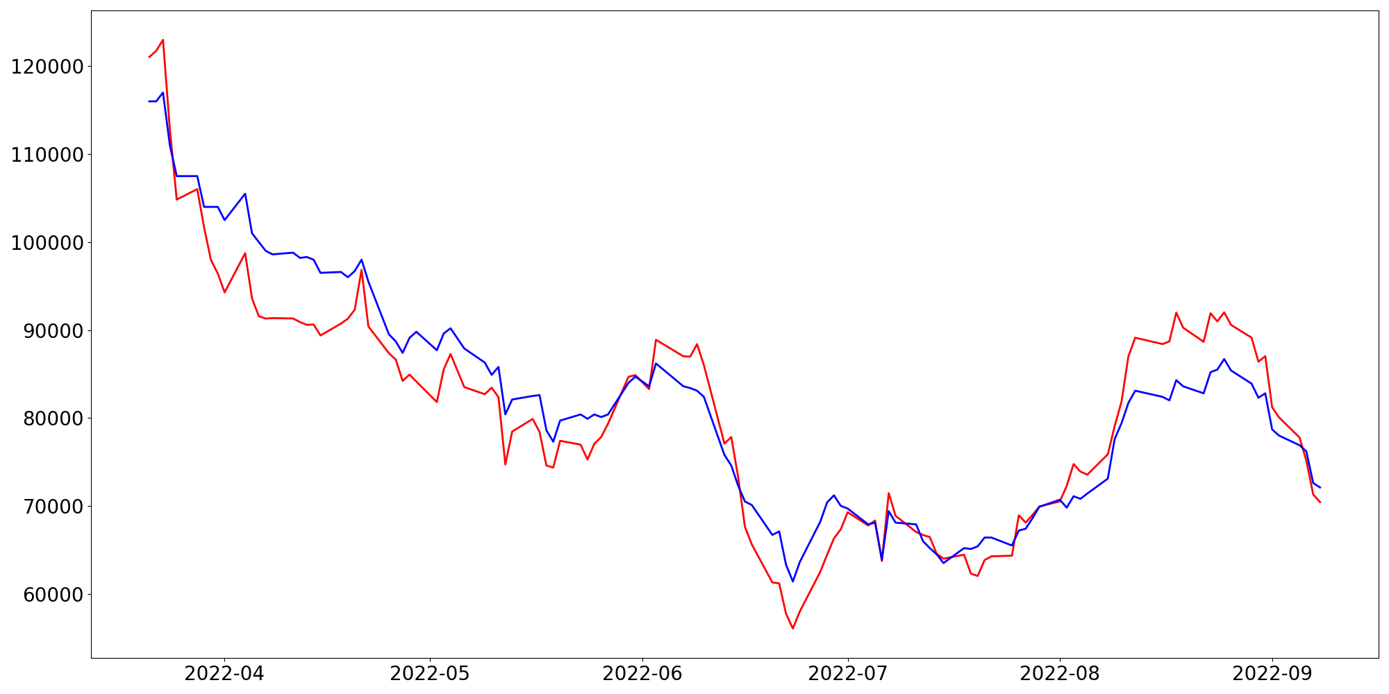 [ - : 실제값(종가) / - : 예측값(종가) ]
