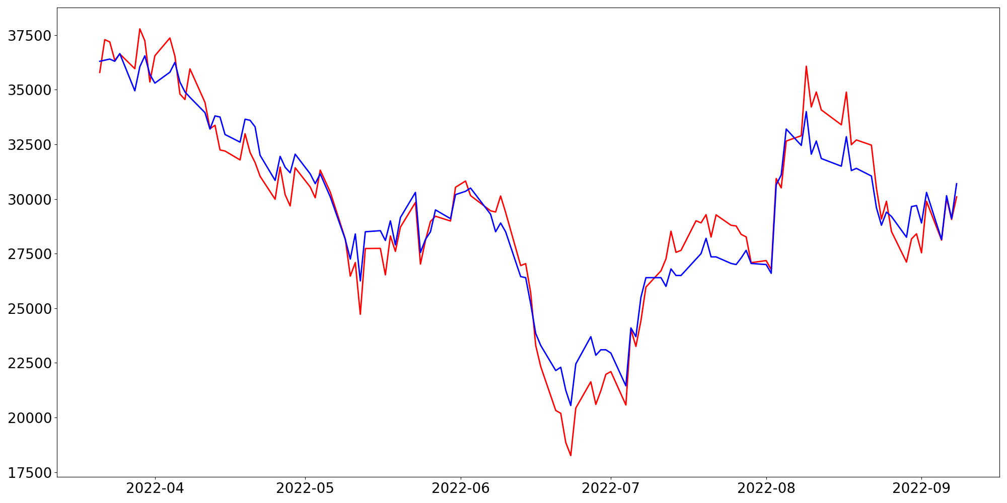 [ - : 실제값(종가) / - : 예측값(종가) ]