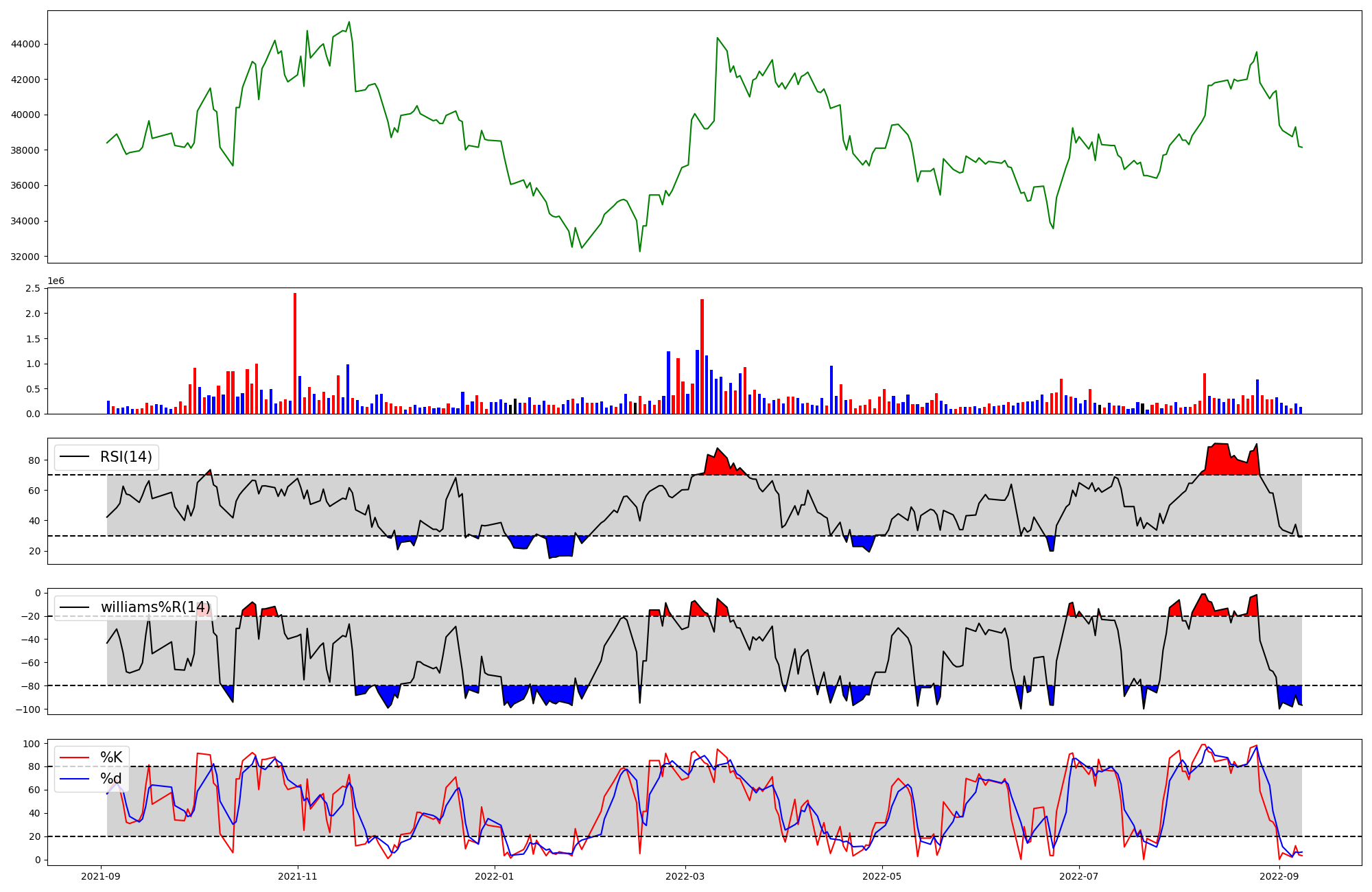 RSI Williams %R stochastic(%K)
