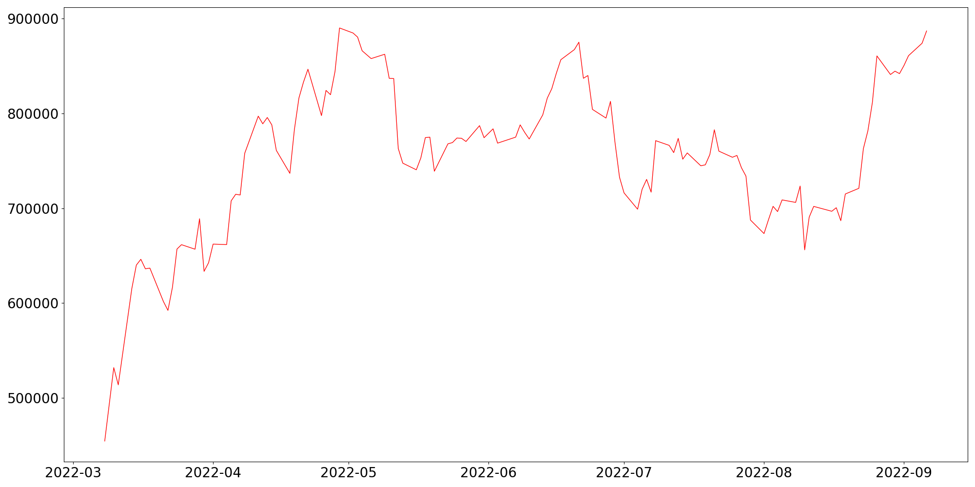 일별 공매도 거래량 추이를 그래프로 나타낸 것으로 공매도 거래량이 증가할 수록 단기적으로 가격 하락을 예측하는 시장참가자가 증거하는 것으로 판단해 볼 수 있습니다.