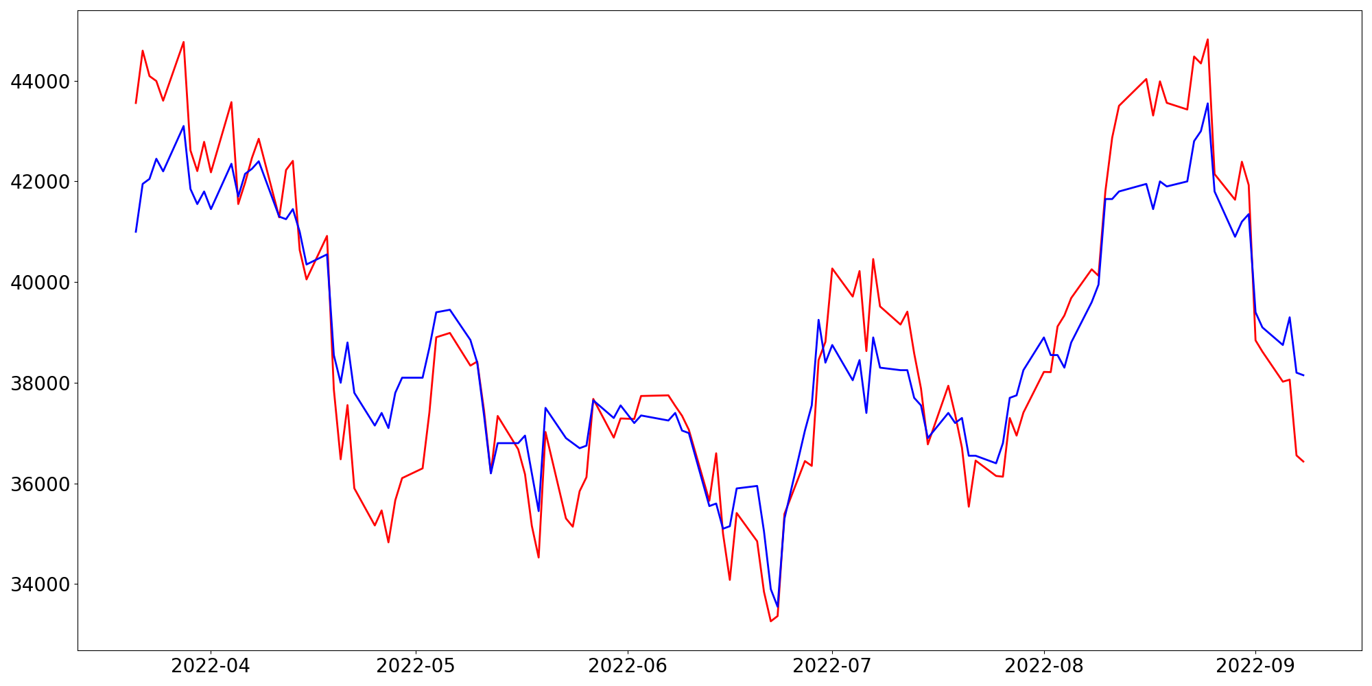 [ - : 실제값(종가) / - : 예측값(종가) ]