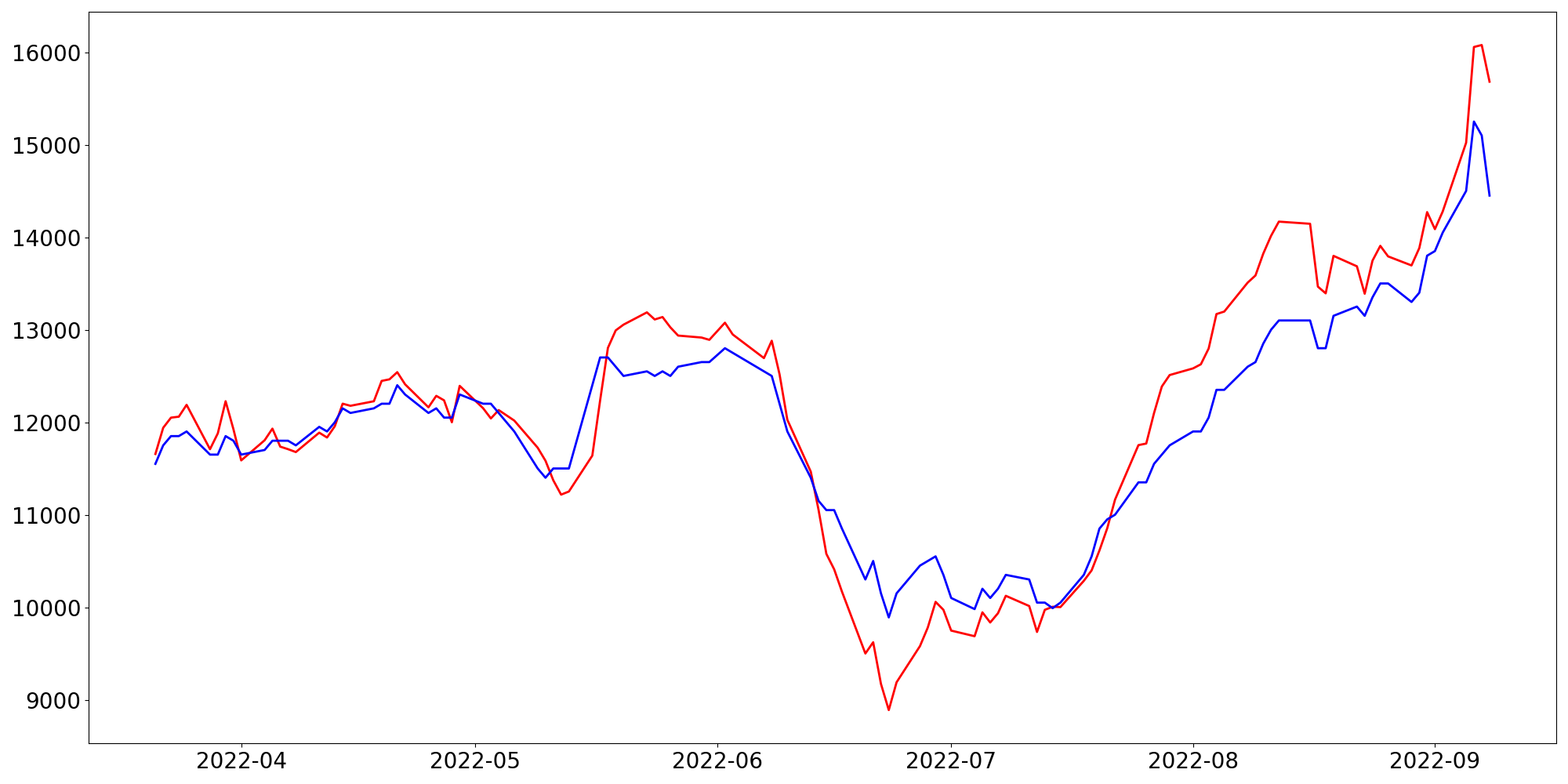 [ - : 실제값(종가) / - : 예측값(종가) ]