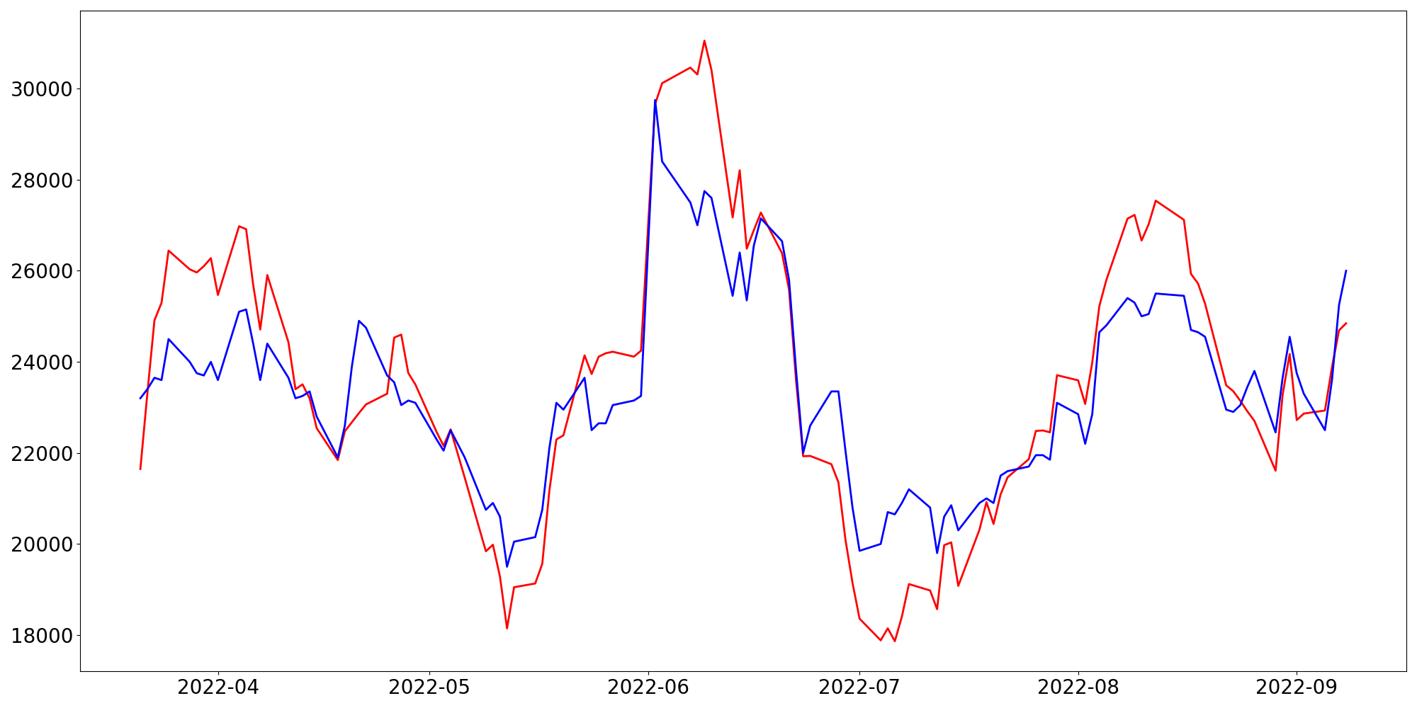 [ - : 실제값(종가) / - : 예측값(종가) ]