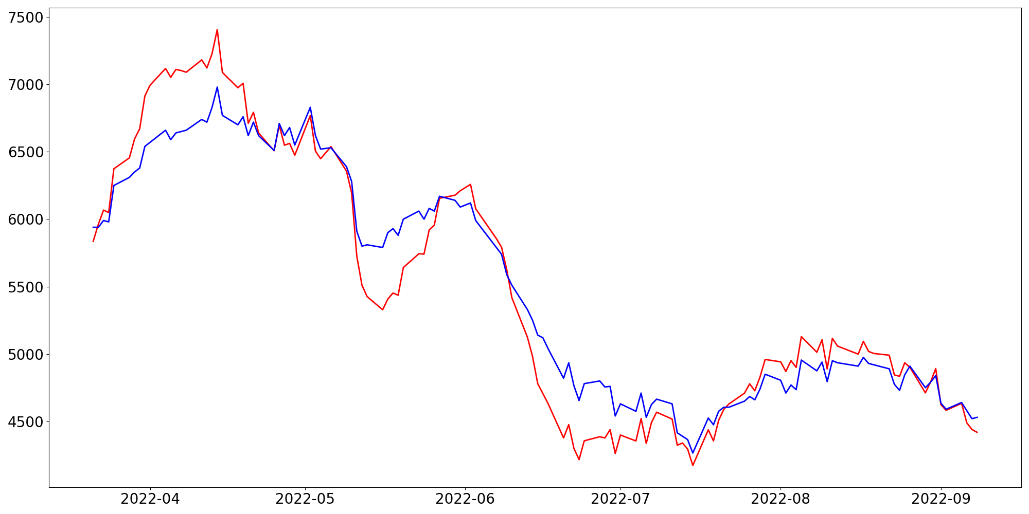 [ - : 실제값(종가) / - : 예측값(종가) ]