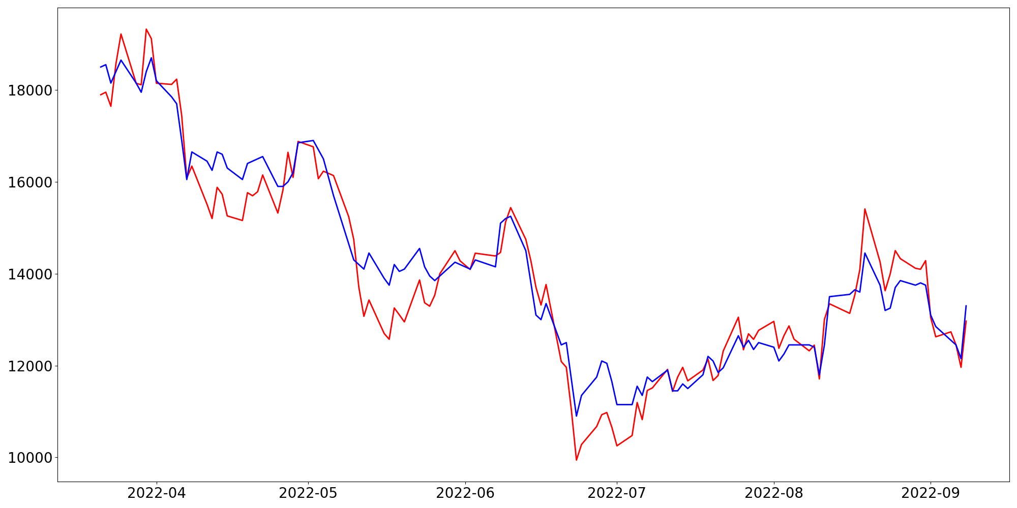 [ - : 실제값(종가) / - : 예측값(종가) ]