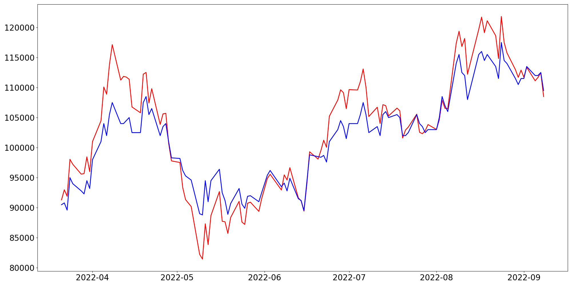 [ - : 실제값(종가) / - : 예측값(종가) ]