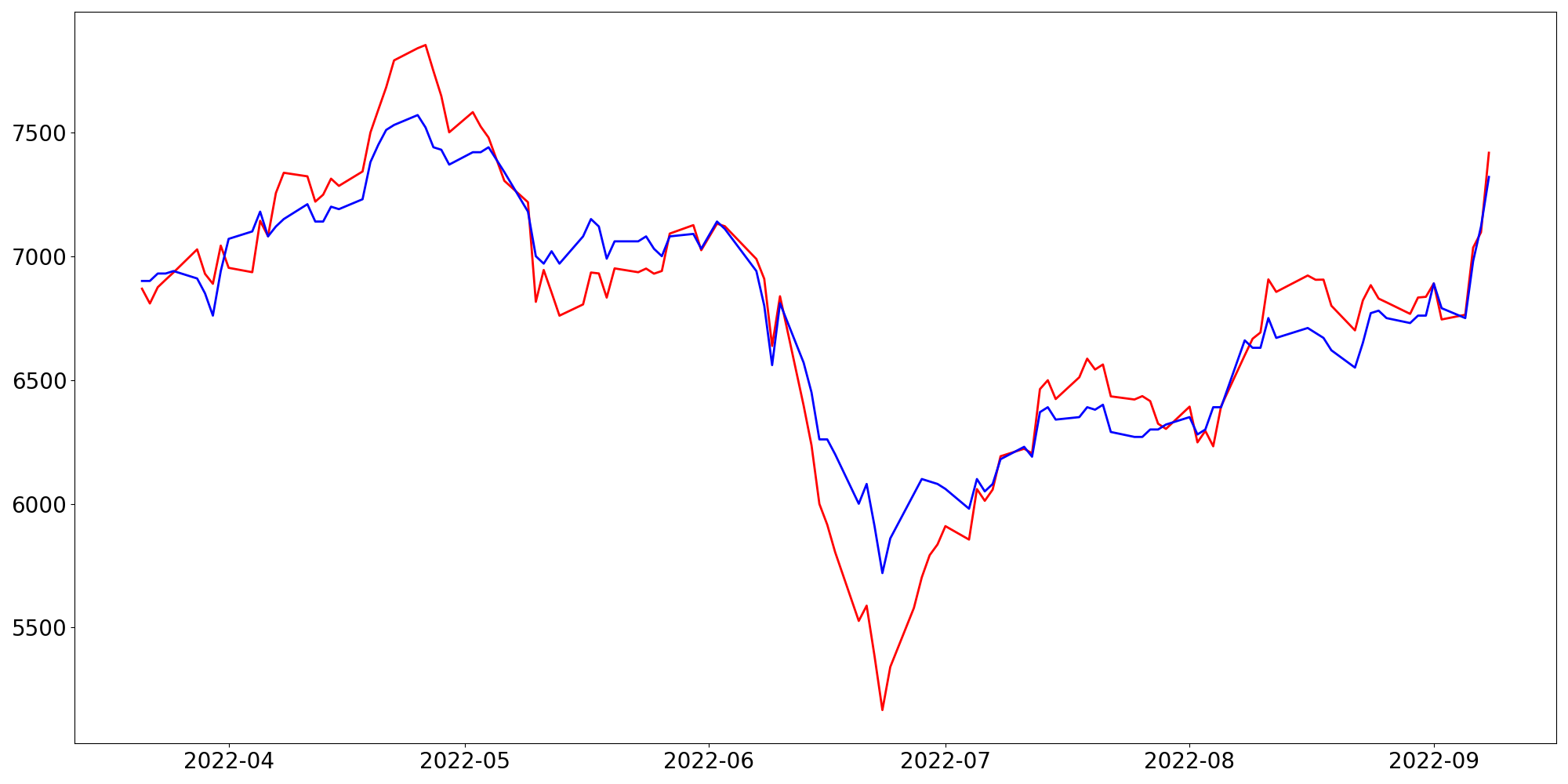 [ - : 실제값(종가) / - : 예측값(종가) ]