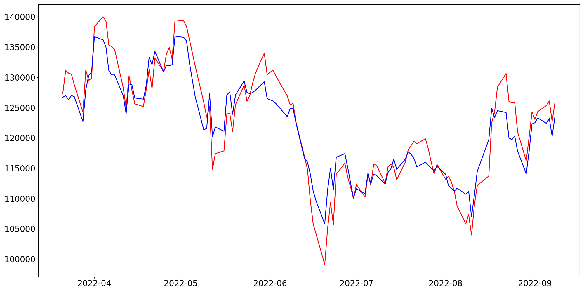[ - : 실제값(종가) / - : 예측값(종가) ]