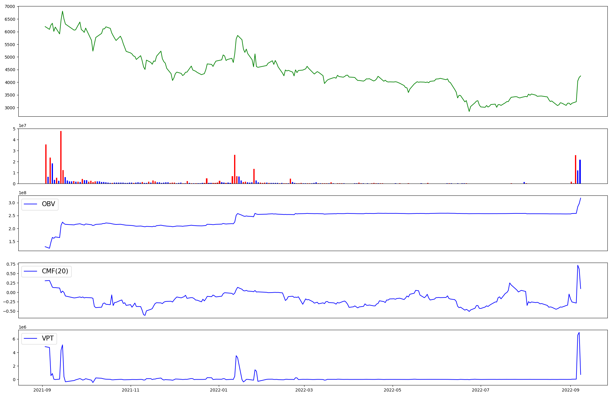 | OBV | CMF | VPT | |