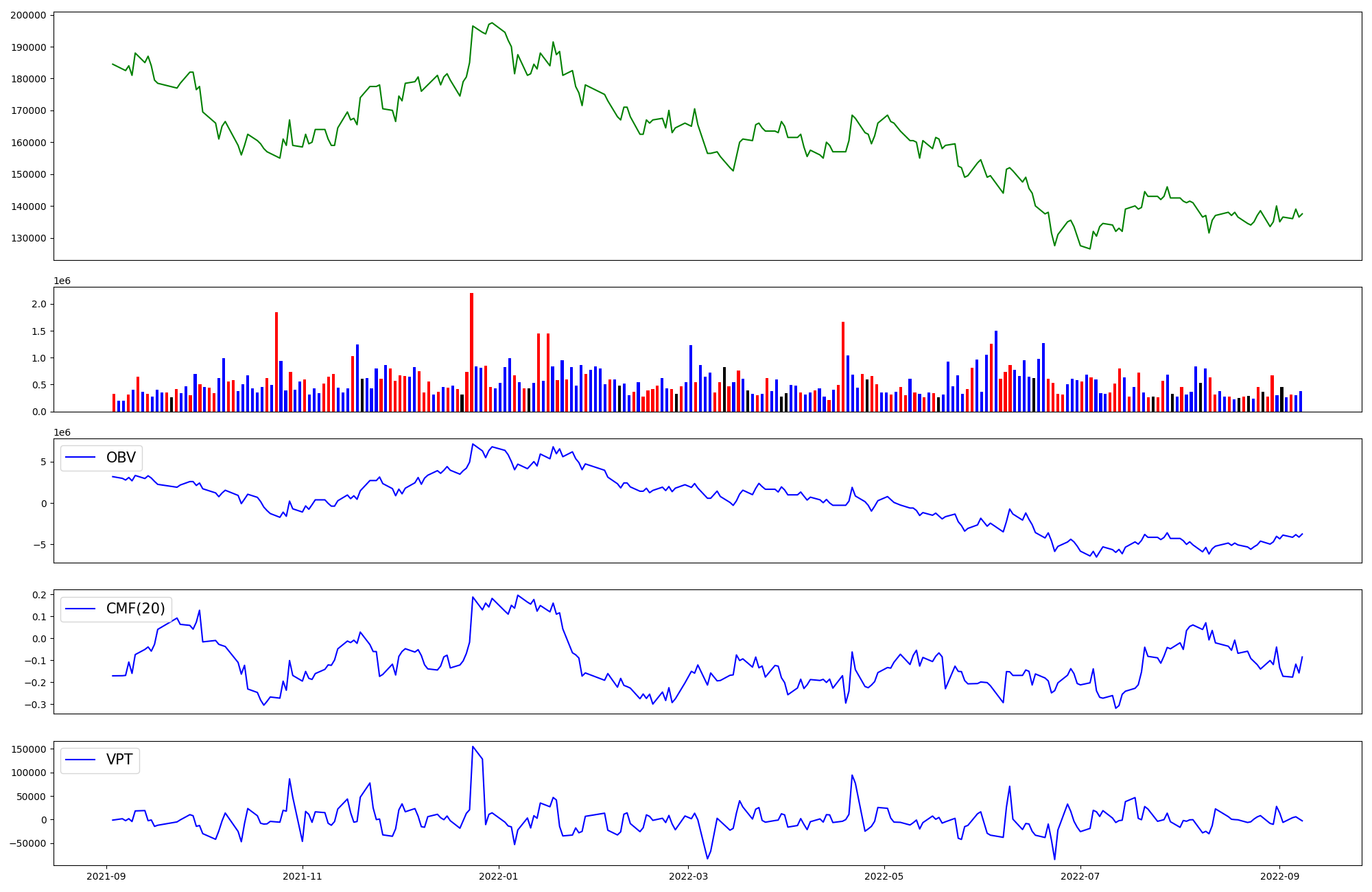 | OBV | CMF | VPT | |