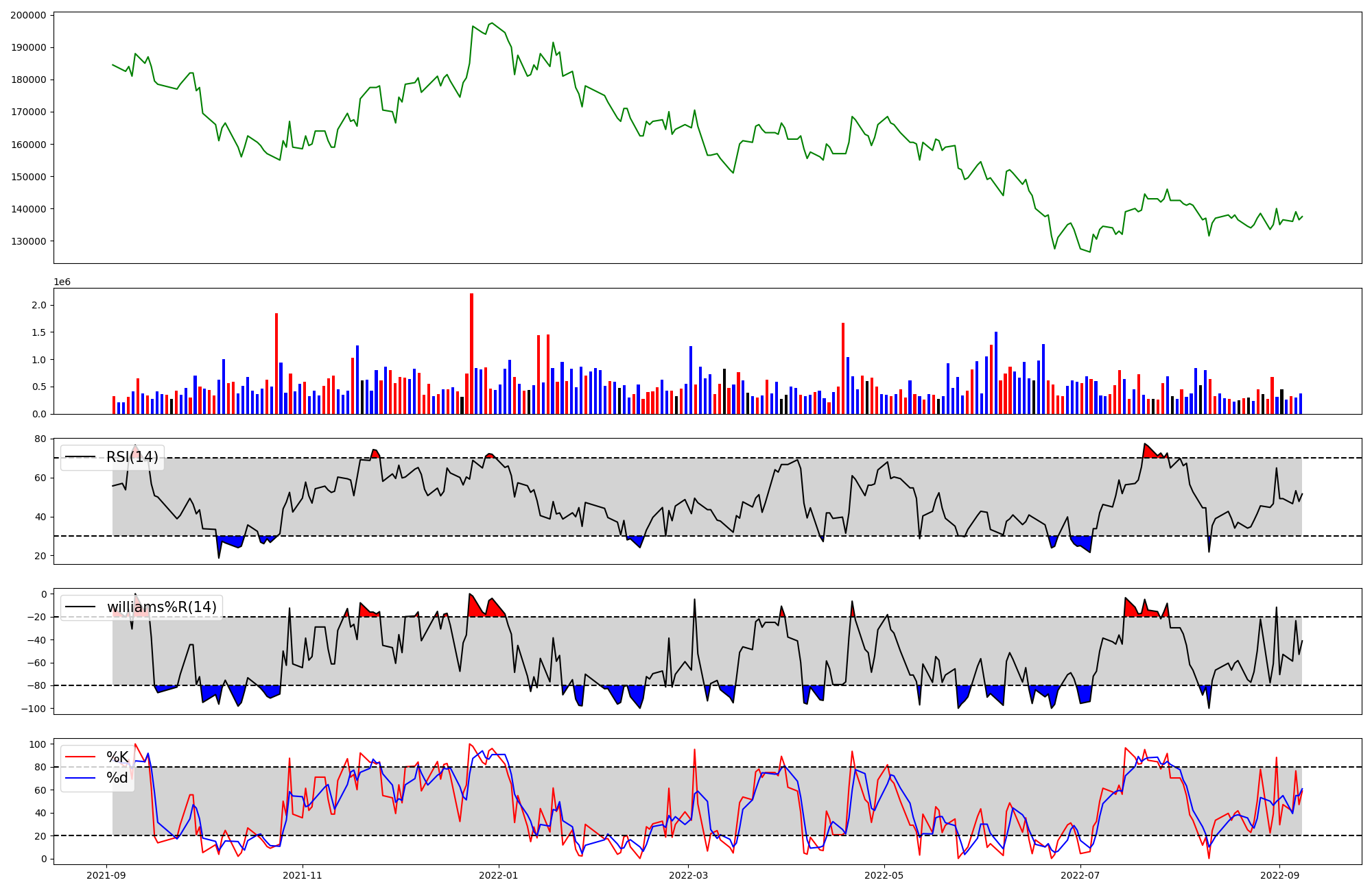 | RSI | Williams %R | stochastic(%K) | |