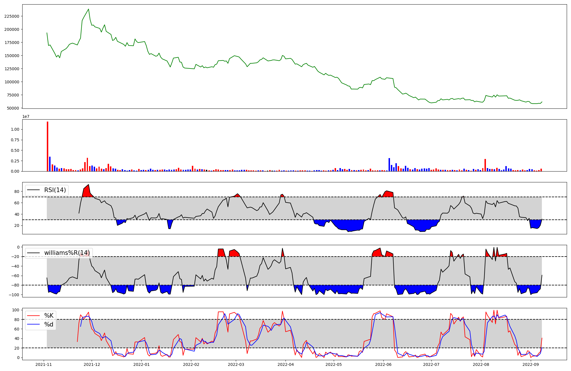 | RSI | Williams %R | stochastic(%K) | |