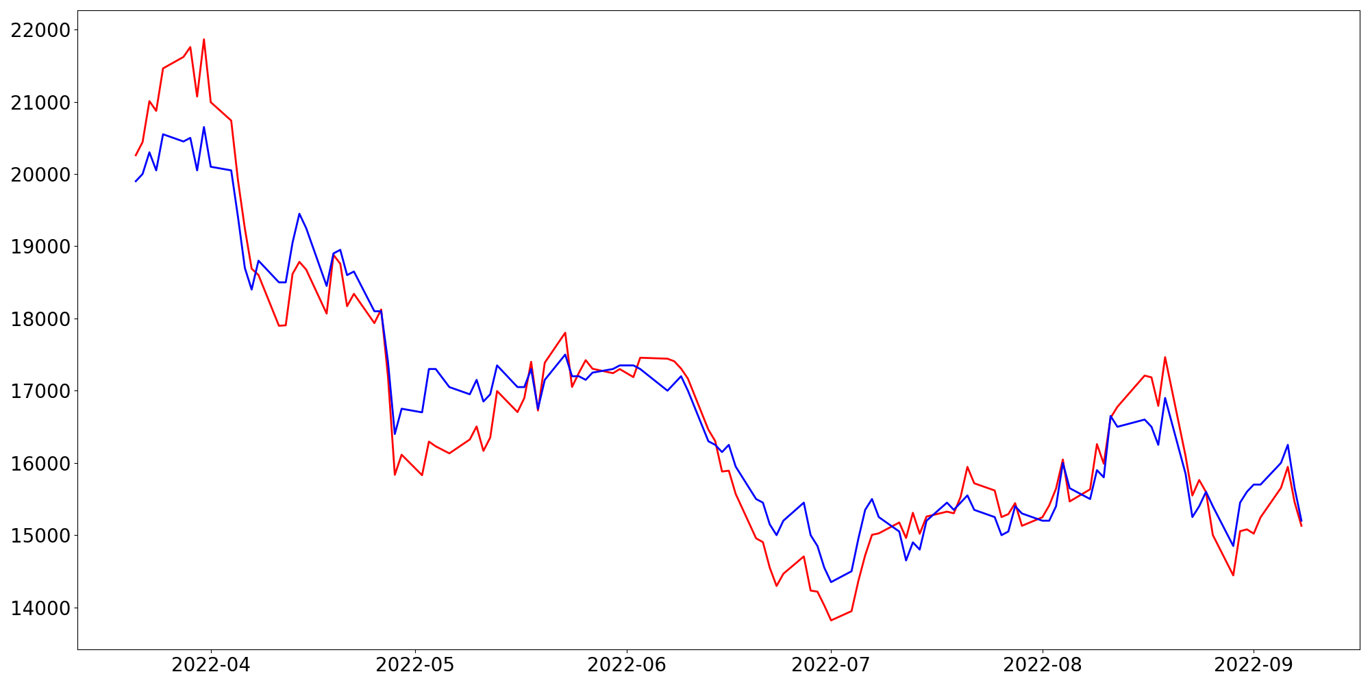 [ - : 실제값(종가) / - : 예측값(종가) ]