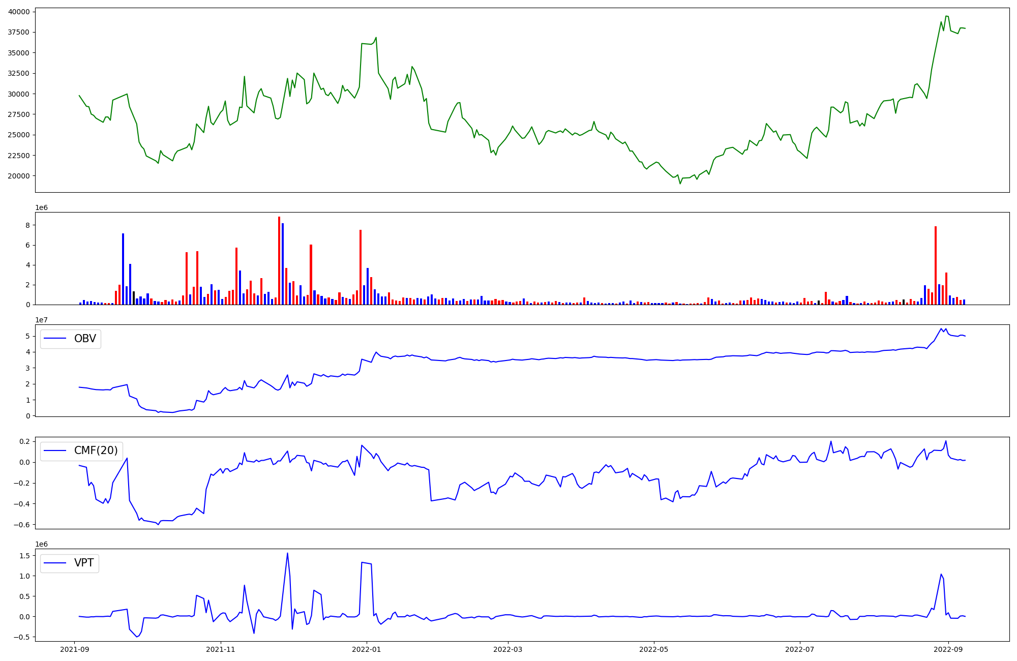 | OBV | CMF | VPT | |