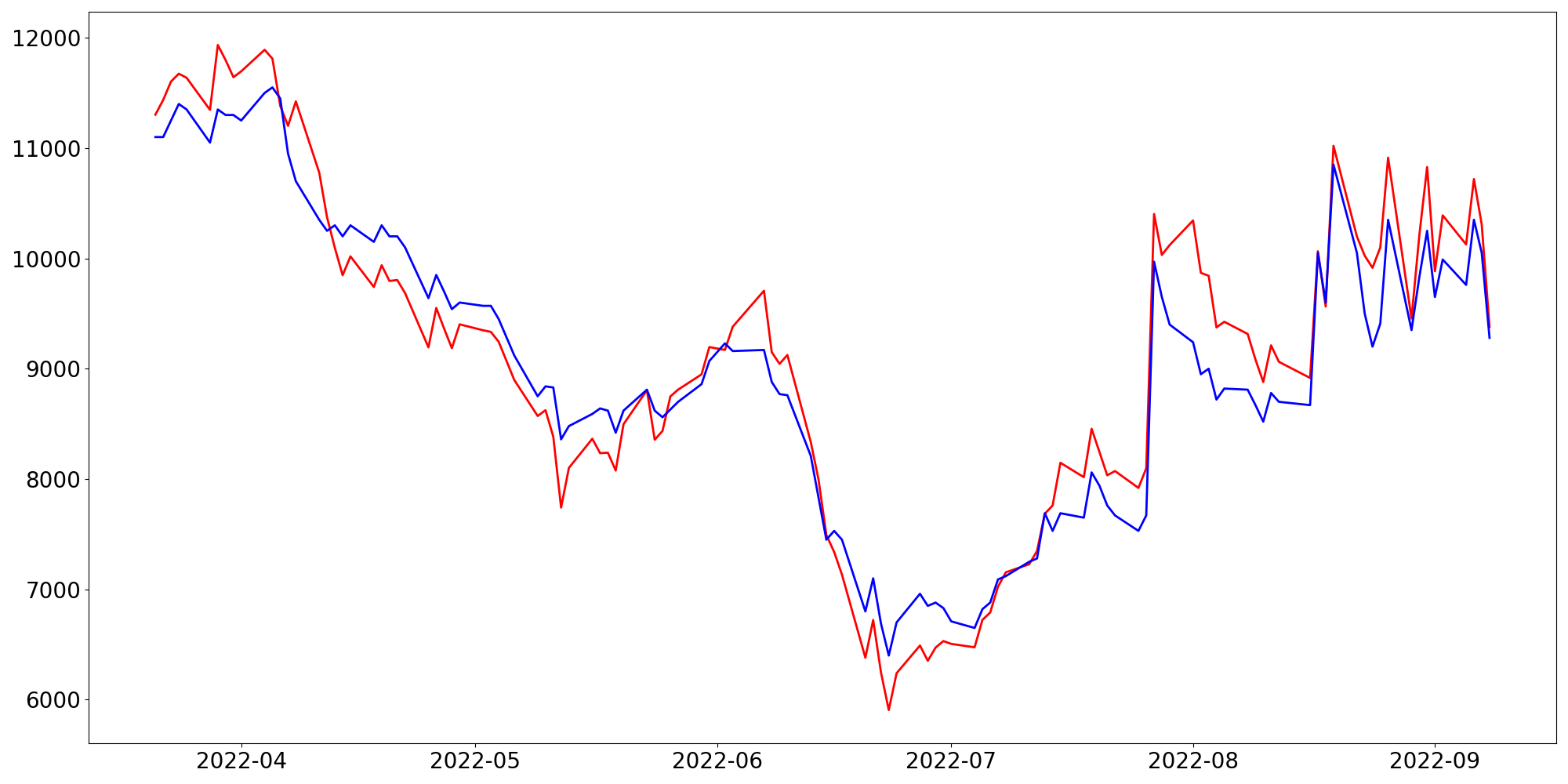 [ - : 실제값(종가) / - : 예측값(종가) ]