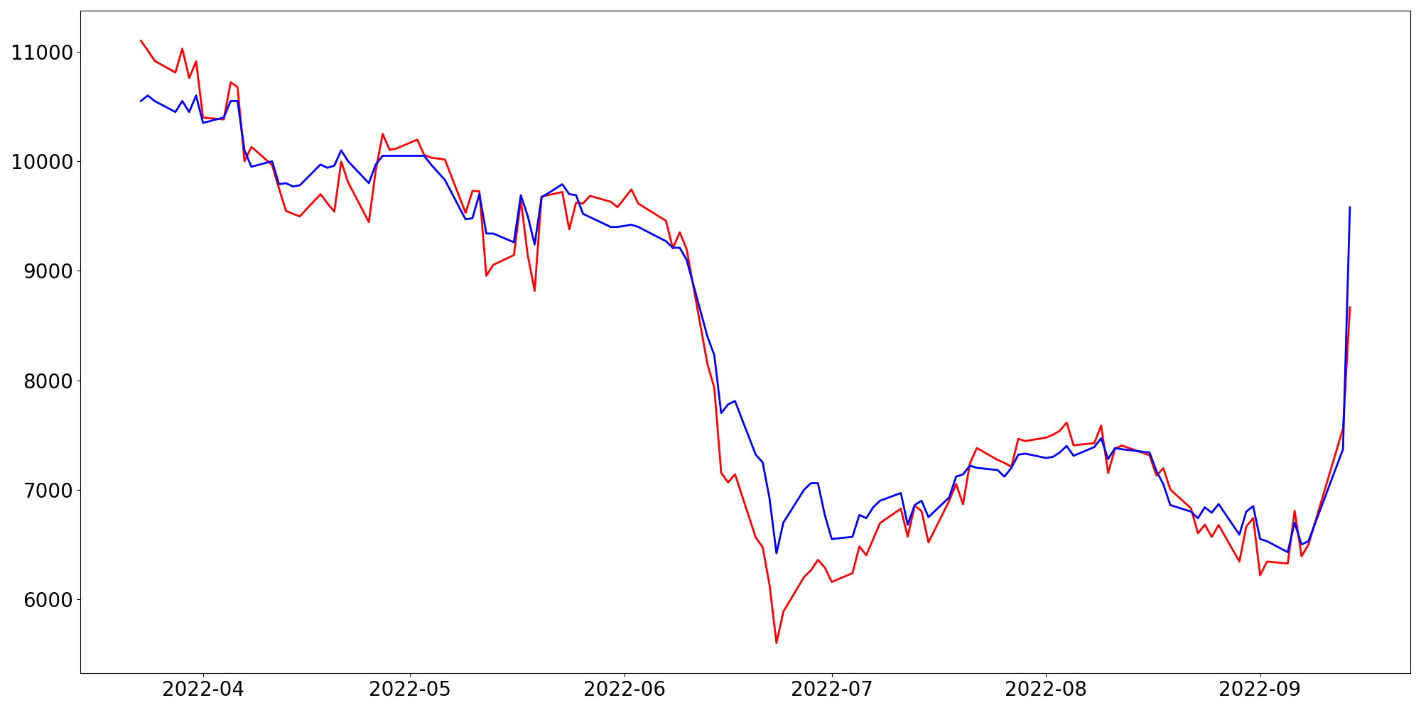 [ - : 실제값(종가) / - : 예측값(종가) ]