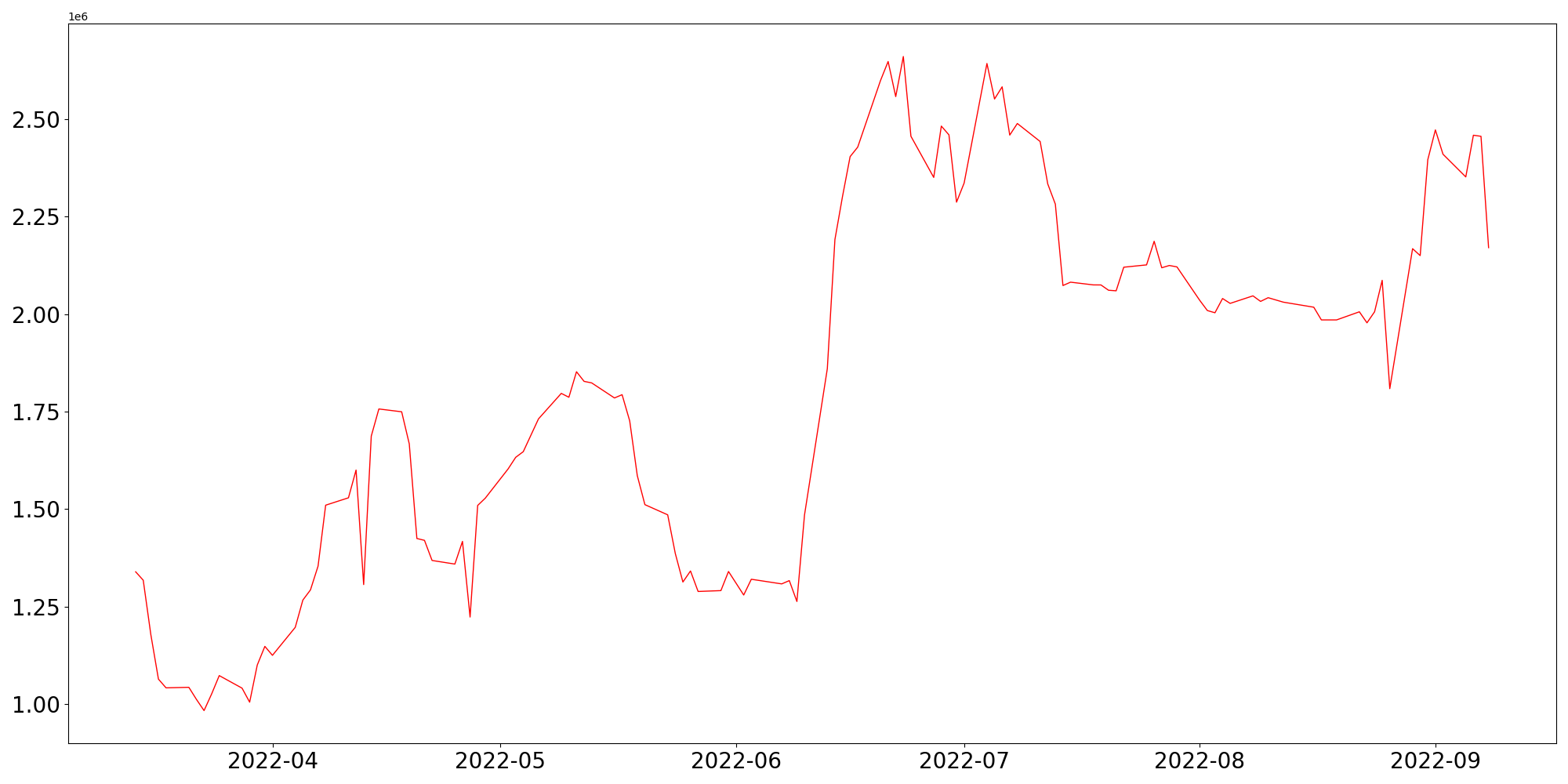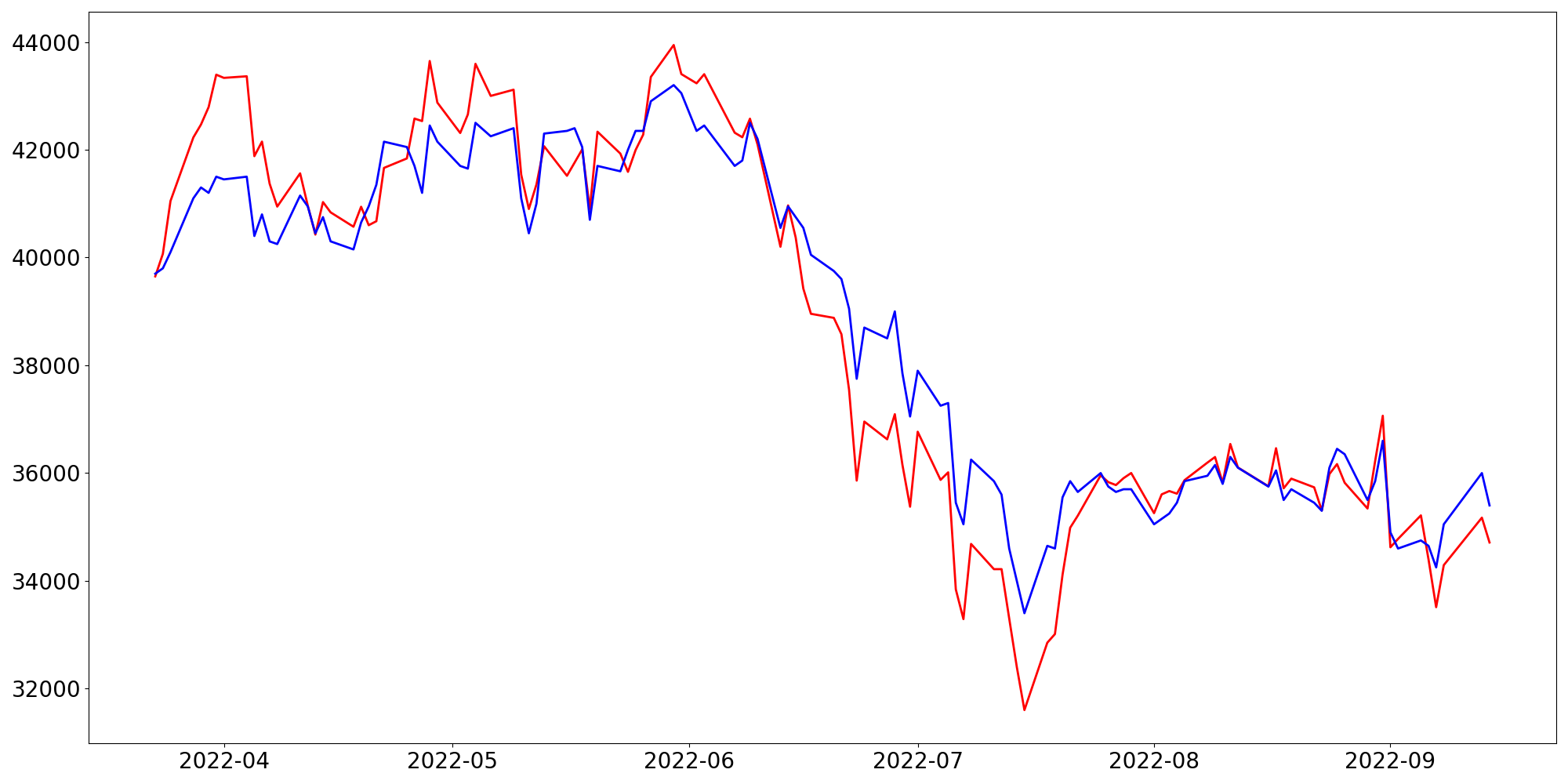 [ - : 실제값(종가) / - : 예측값(종가) ]