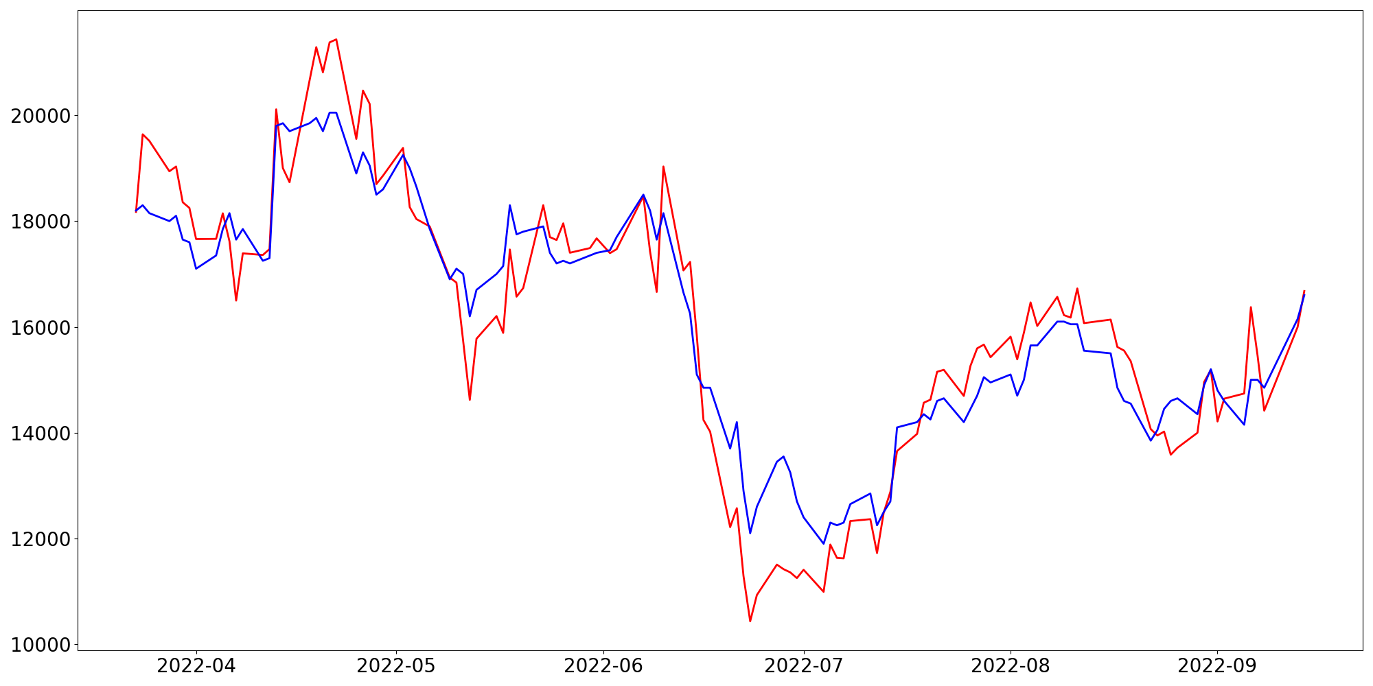 [ - : 실제값(종가) / - : 예측값(종가) ]