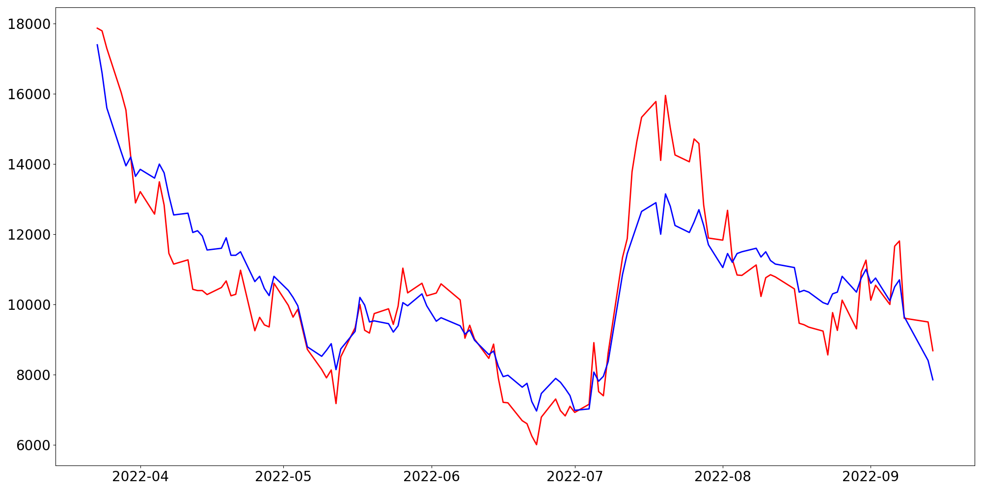 [ - : 실제값(종가) / - : 예측값(종가) ]