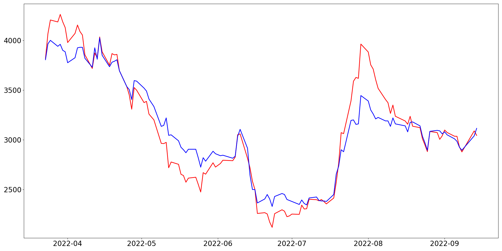 [ - : 실제값(종가) / - : 예측값(종가) ]