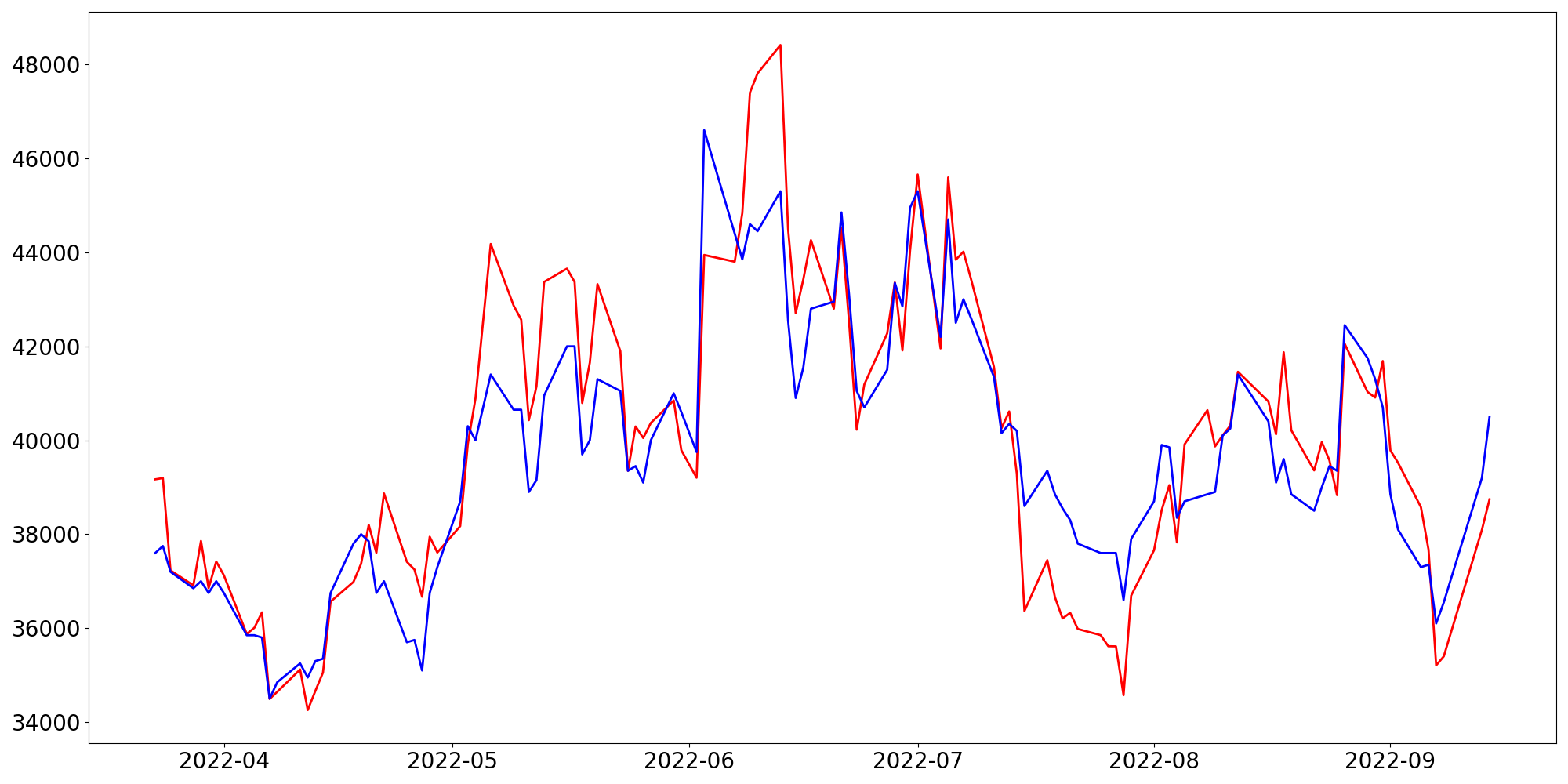 [ - : 실제값(종가) / - : 예측값(종가) ]