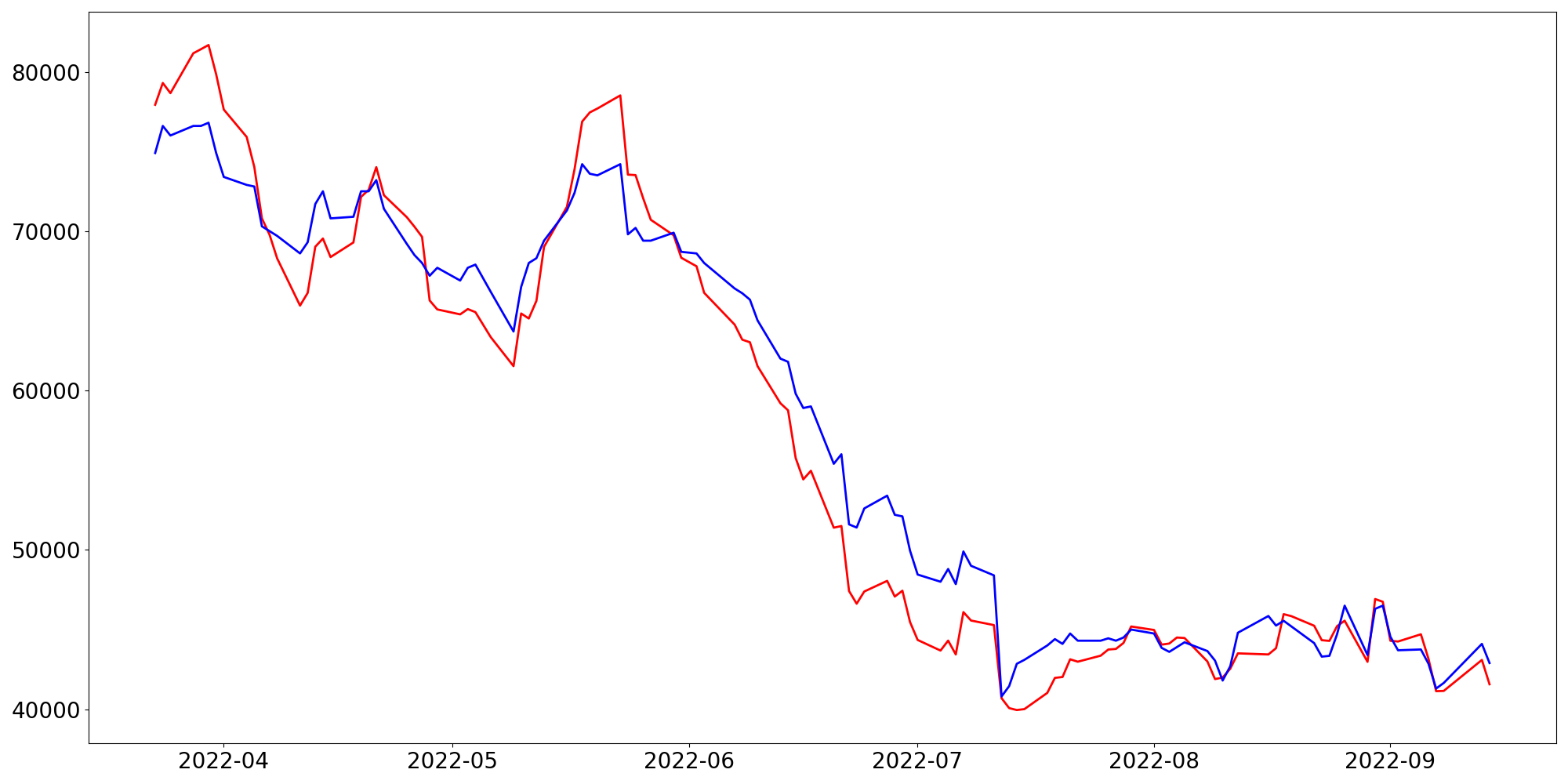 [ - : 실제값(종가) / - : 예측값(종가) ]