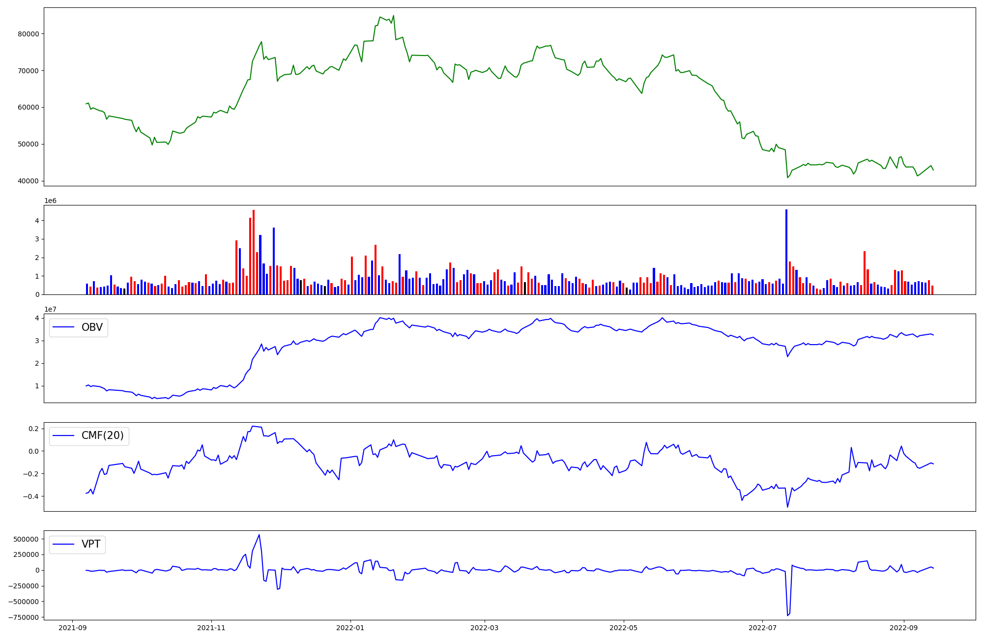 | OBV | CMF | VPT | |
