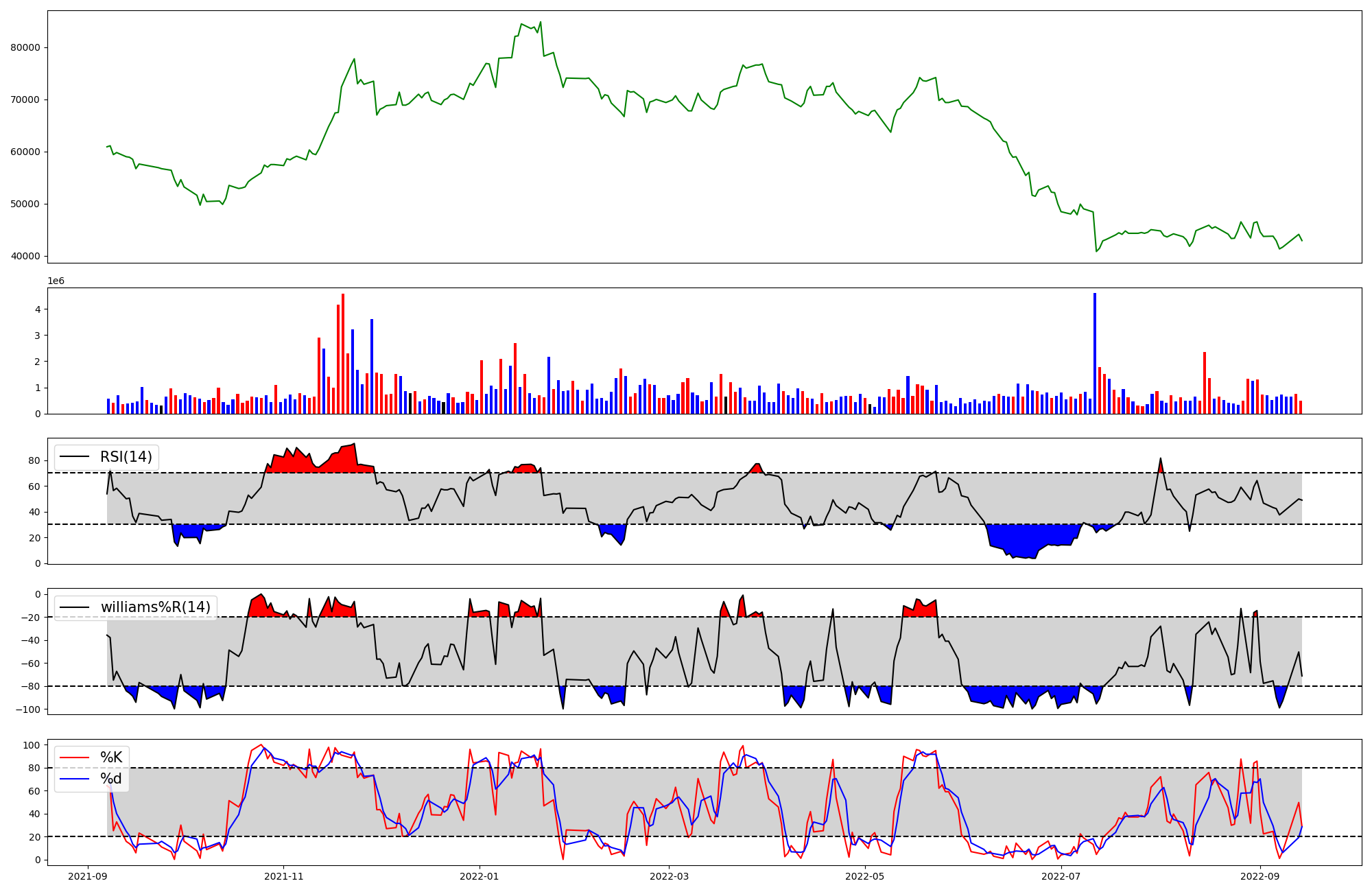| RSI | Williams %R | stochastic(%K) | |
