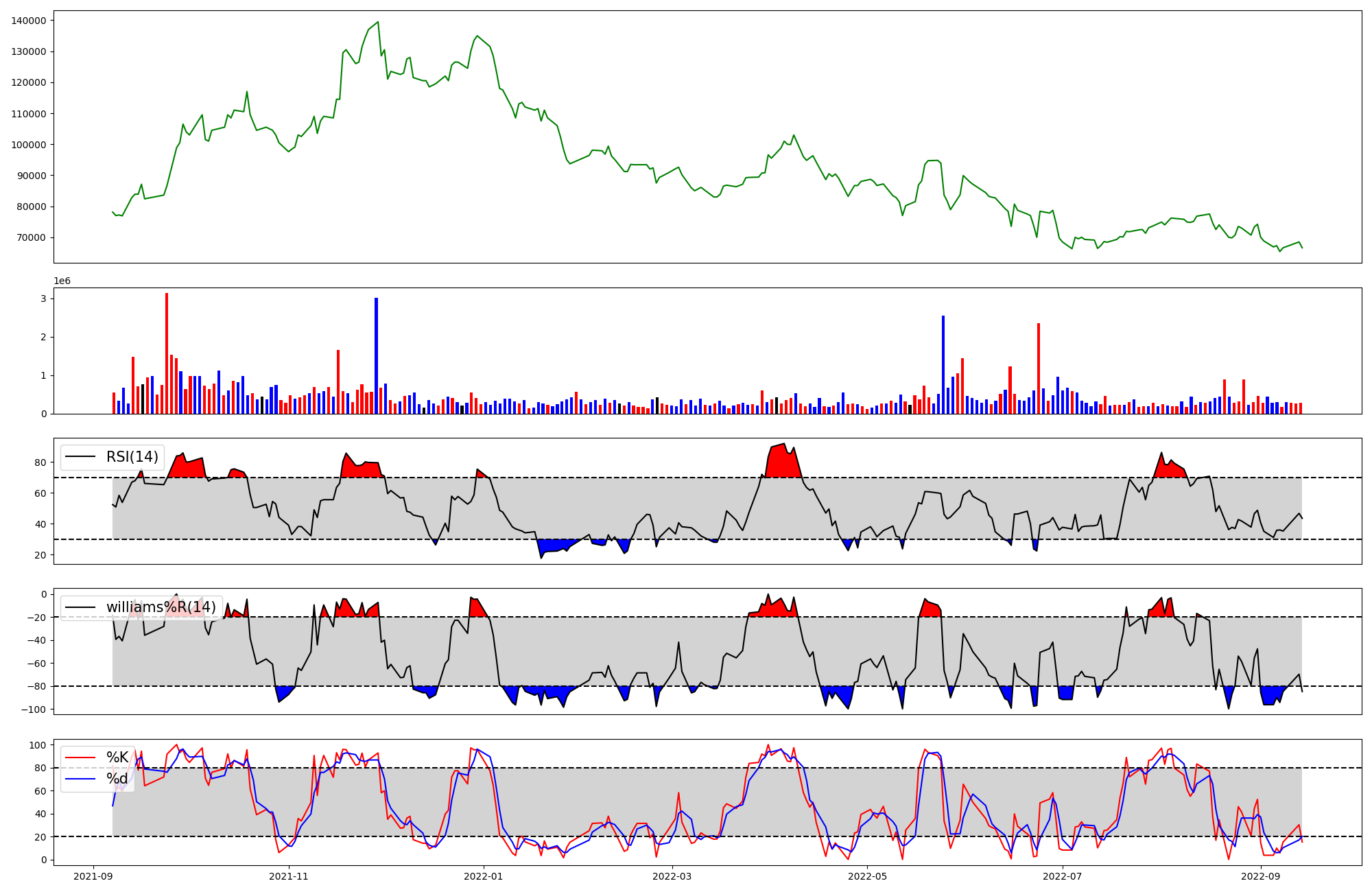 | RSI | Williams %R | stochastic(%K) | |