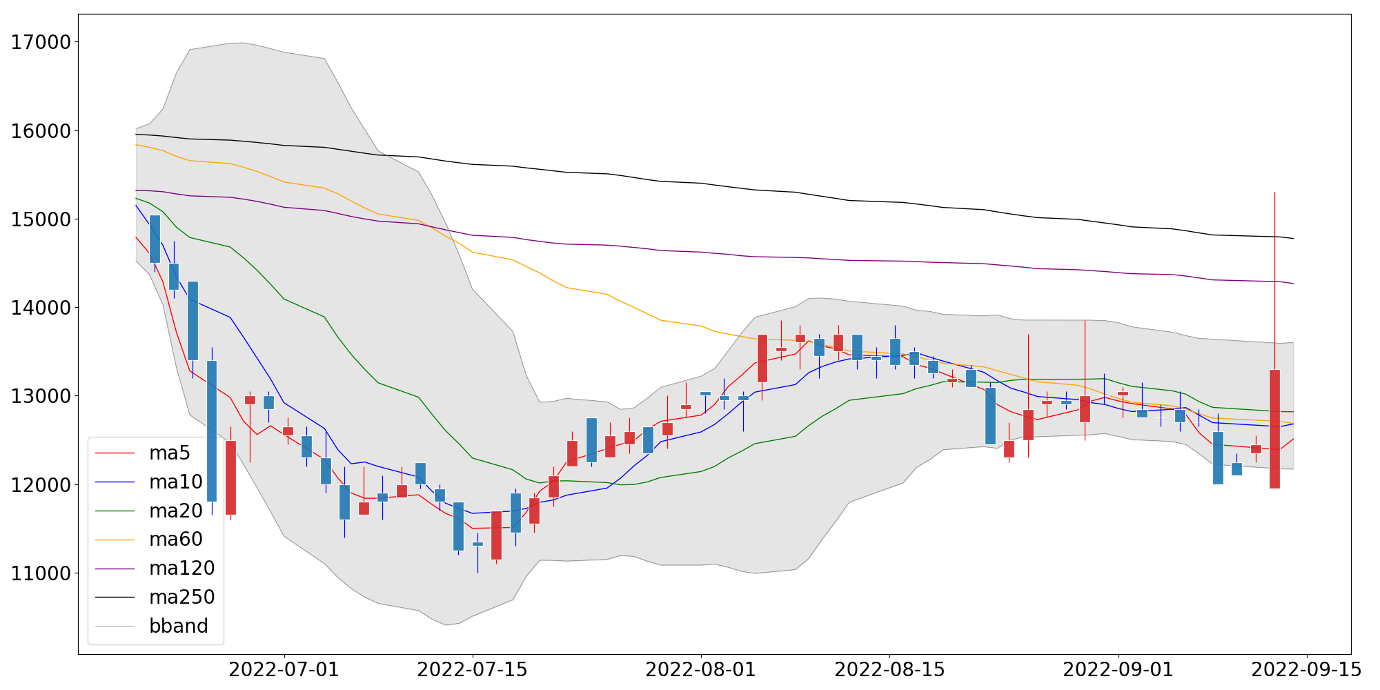 □ 장기 : 현재 종가가 장기(250일) 이동평균값(14,776원)을 하회 하여 장기적 추세 하락 중