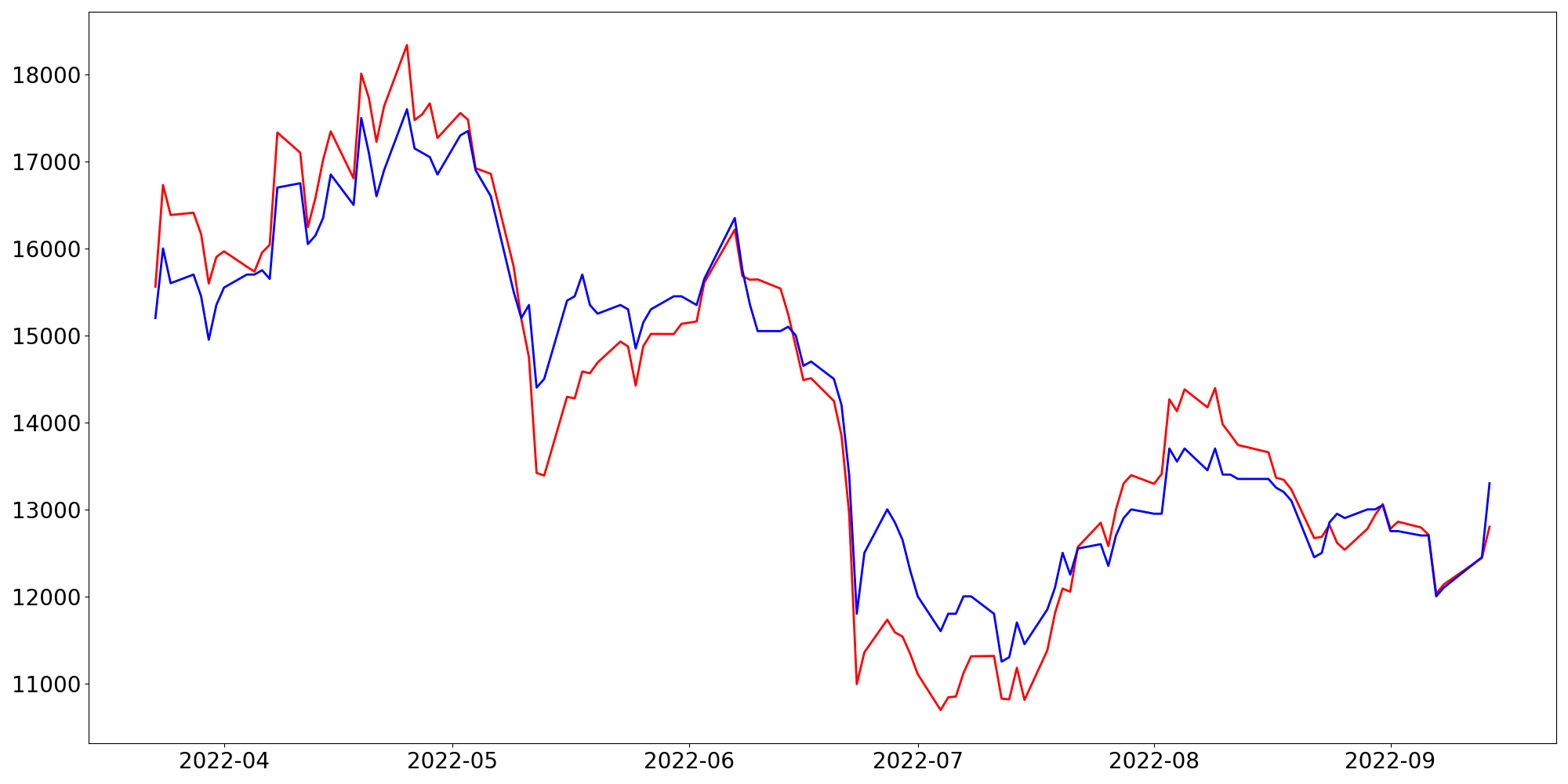 [ - : 실제값(종가) / - : 예측값(종가) ]