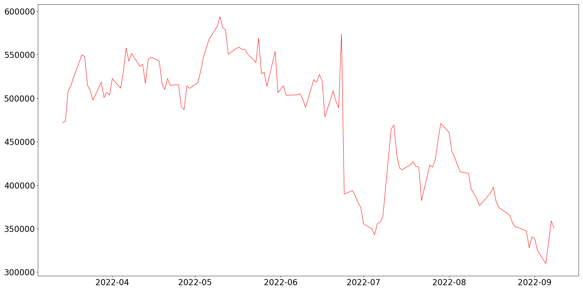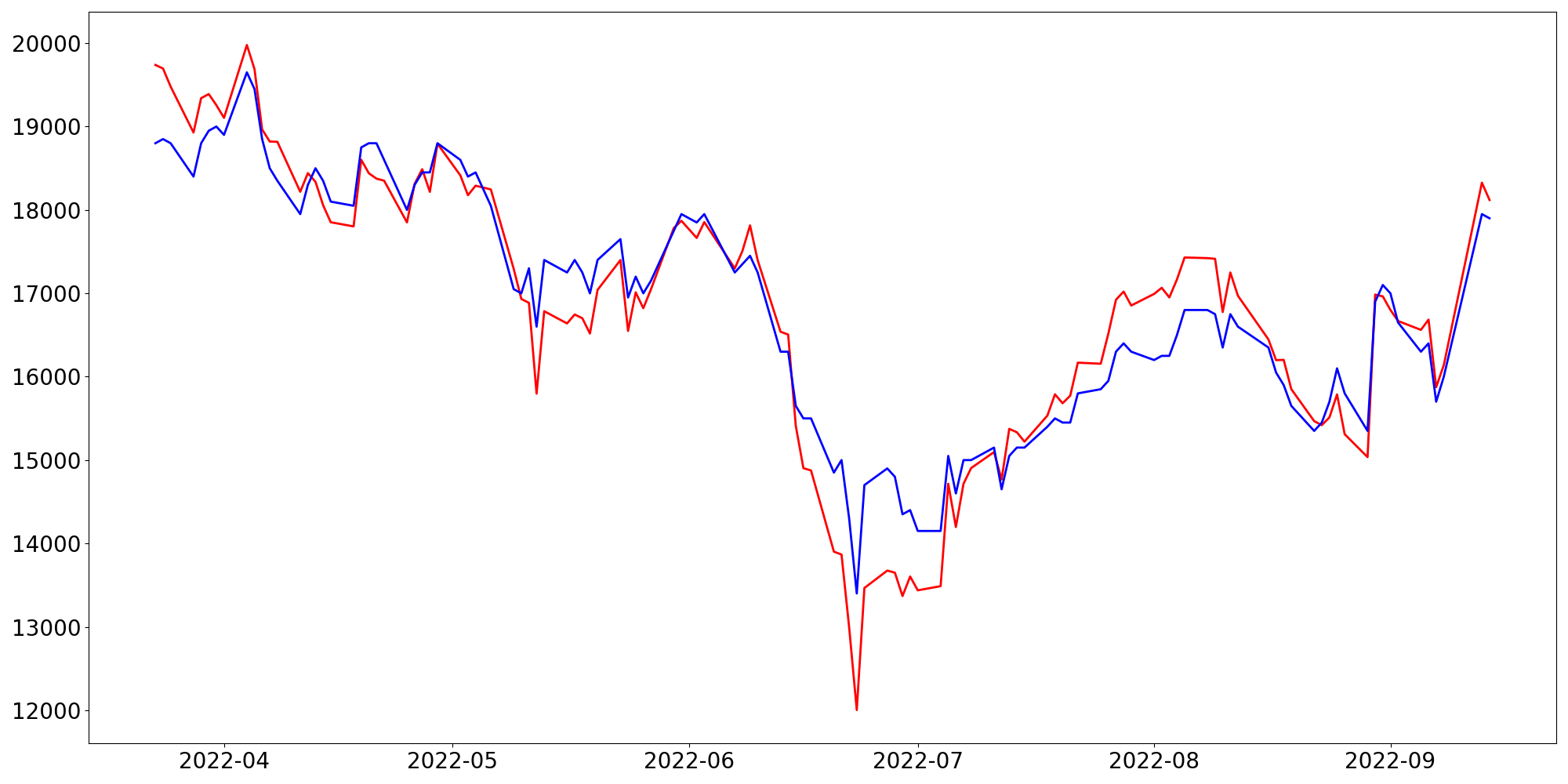 [ - : 실제값(종가) / - : 예측값(종가) ]