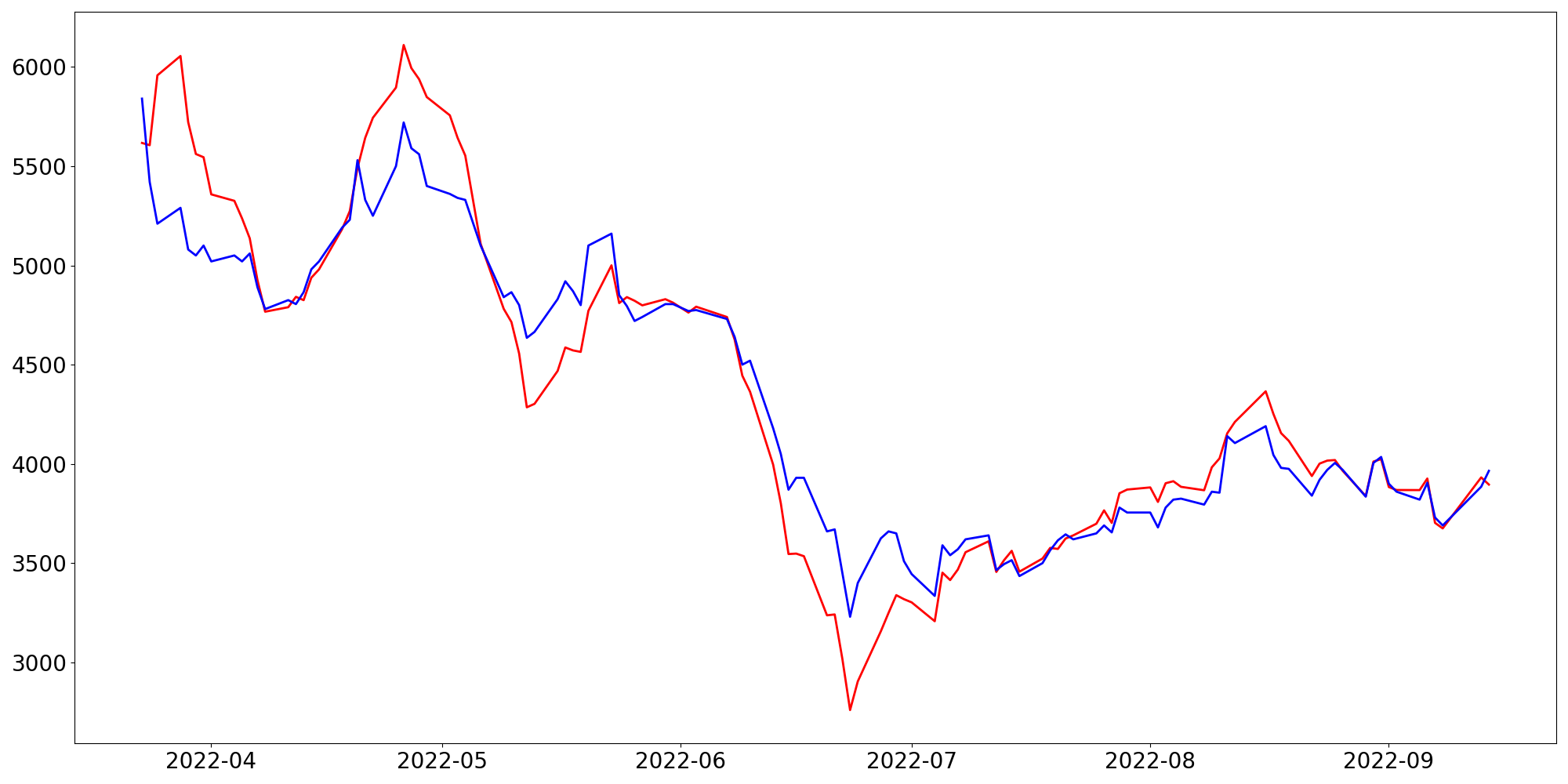[ - : 실제값(종가) / - : 예측값(종가) ]