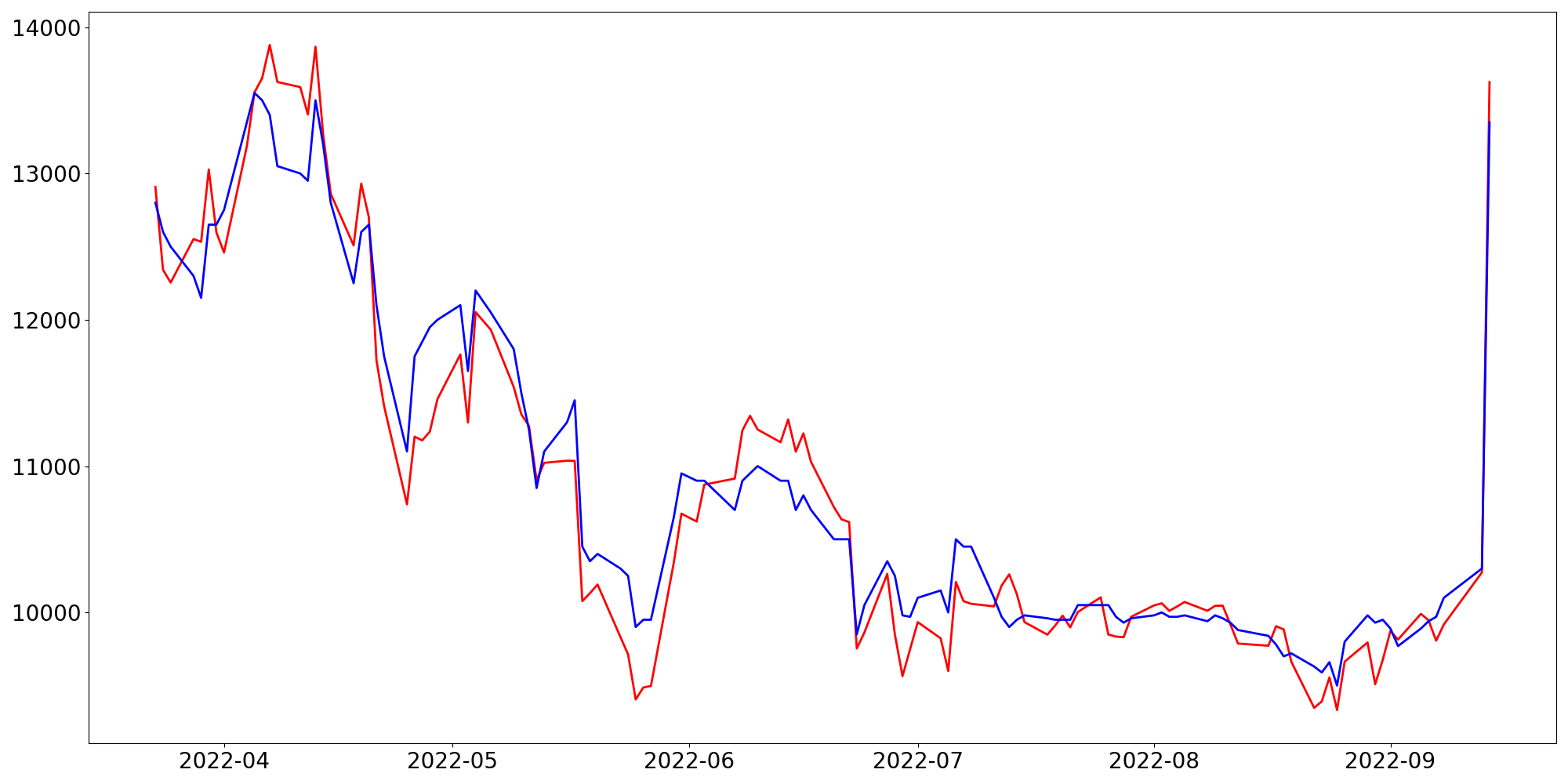 [ - : 실제값(종가) / - : 예측값(종가) ]