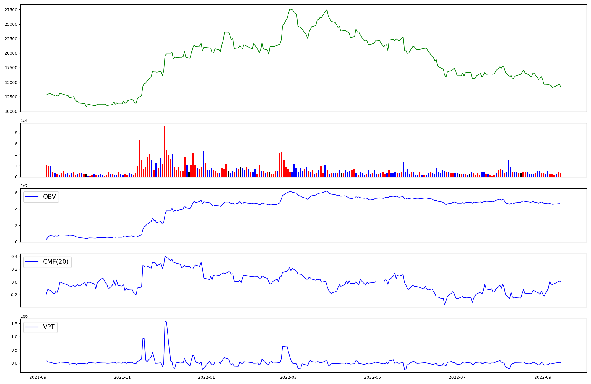 | OBV | CMF | VPT | |