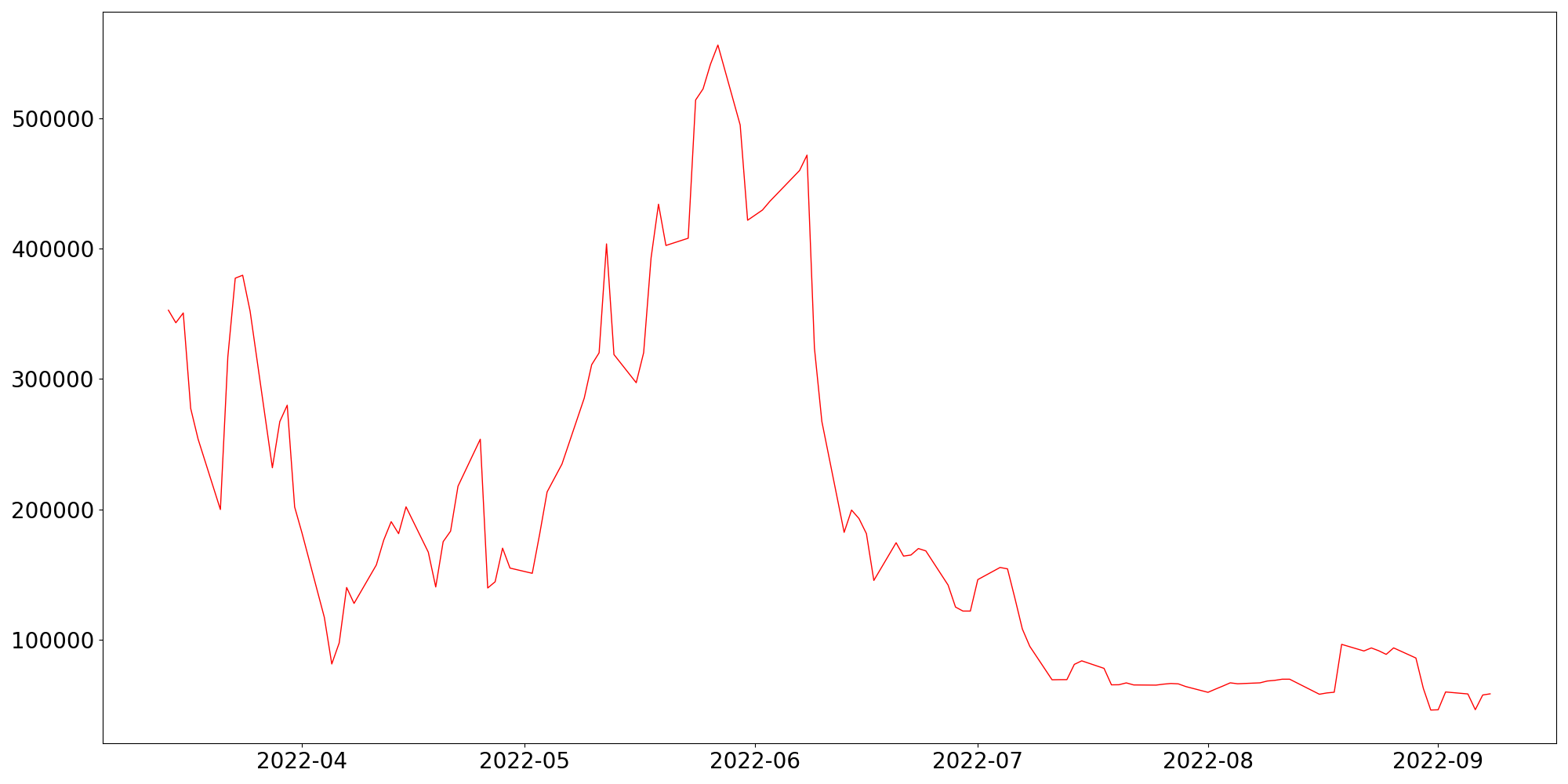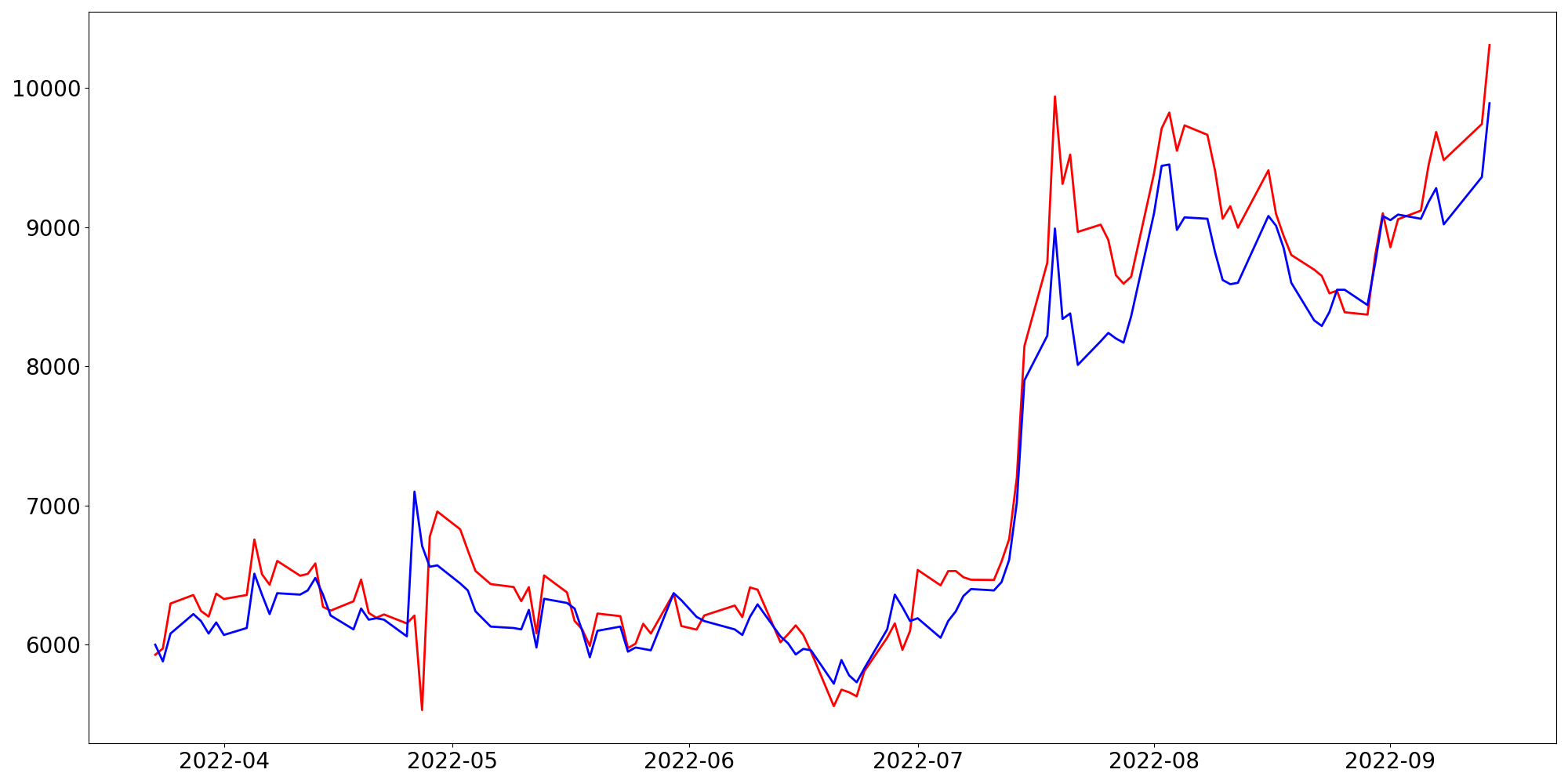 [ - : 실제값(종가) / - : 예측값(종가) ]
