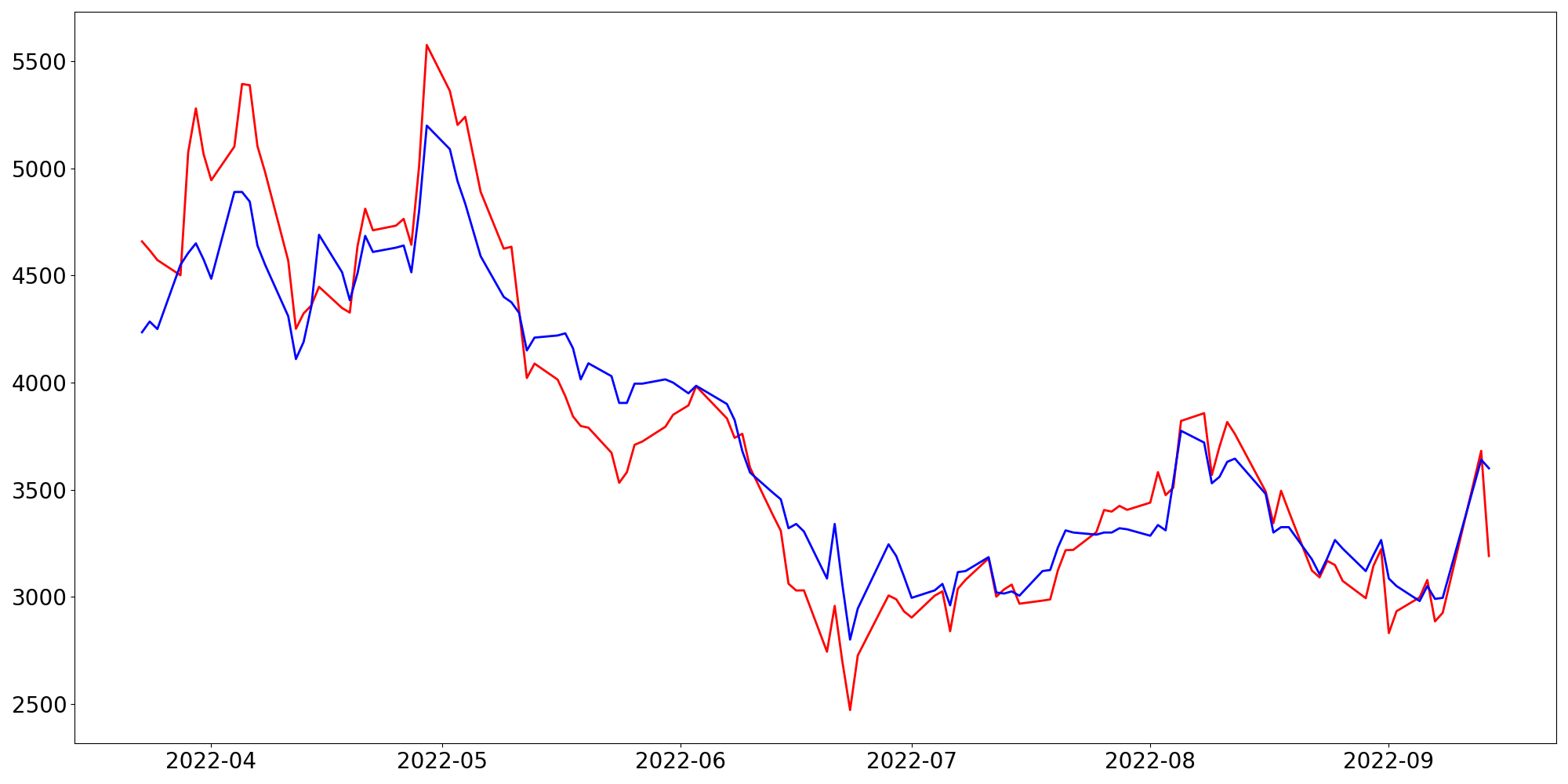 [ - : 실제값(종가) / - : 예측값(종가) ]