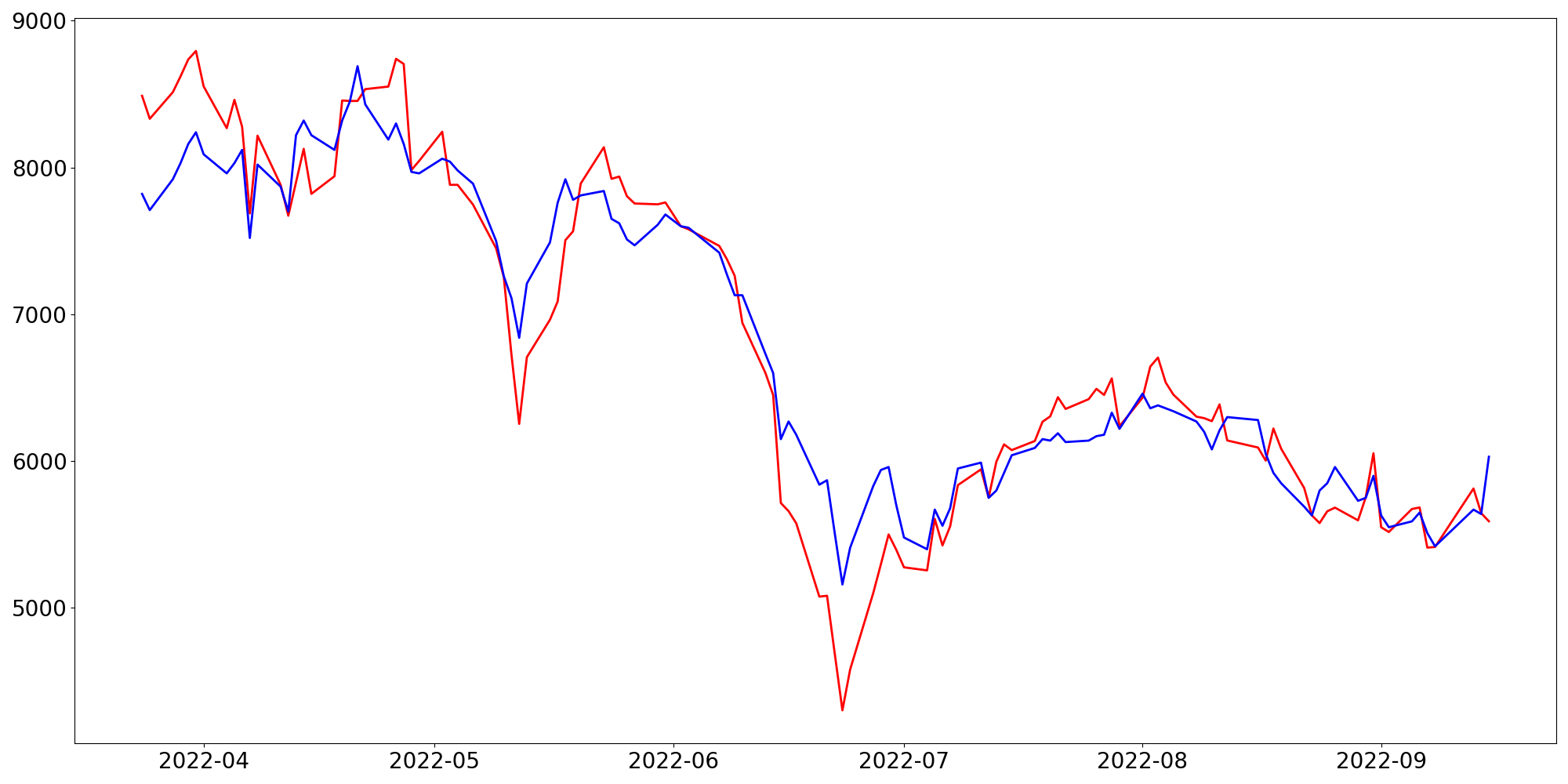 [ - : 실제값(종가) / - : 예측값(종가) ]