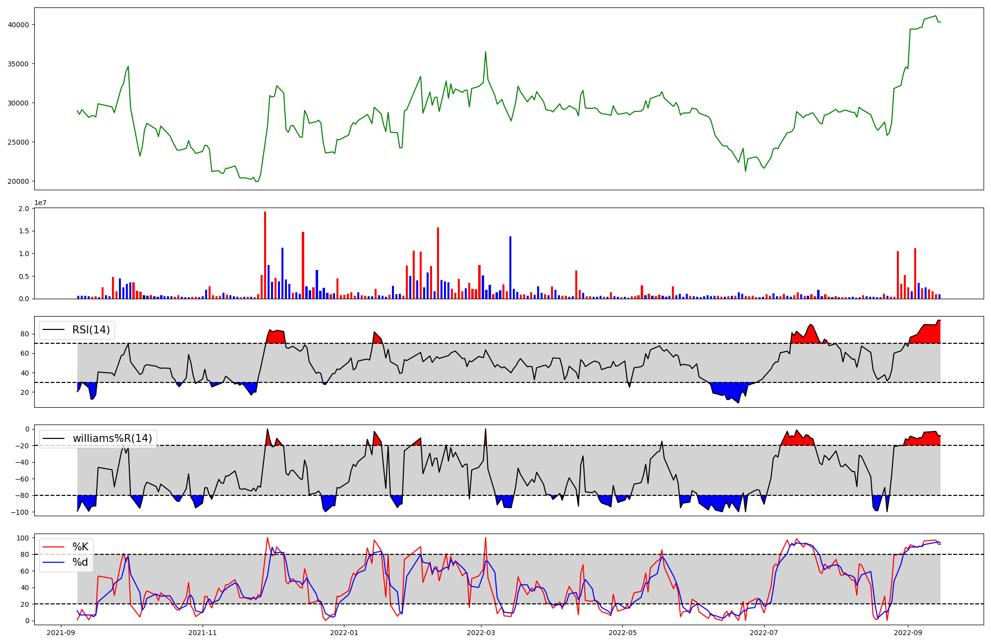 | RSI | Williams %R | stochastic(%K) | |