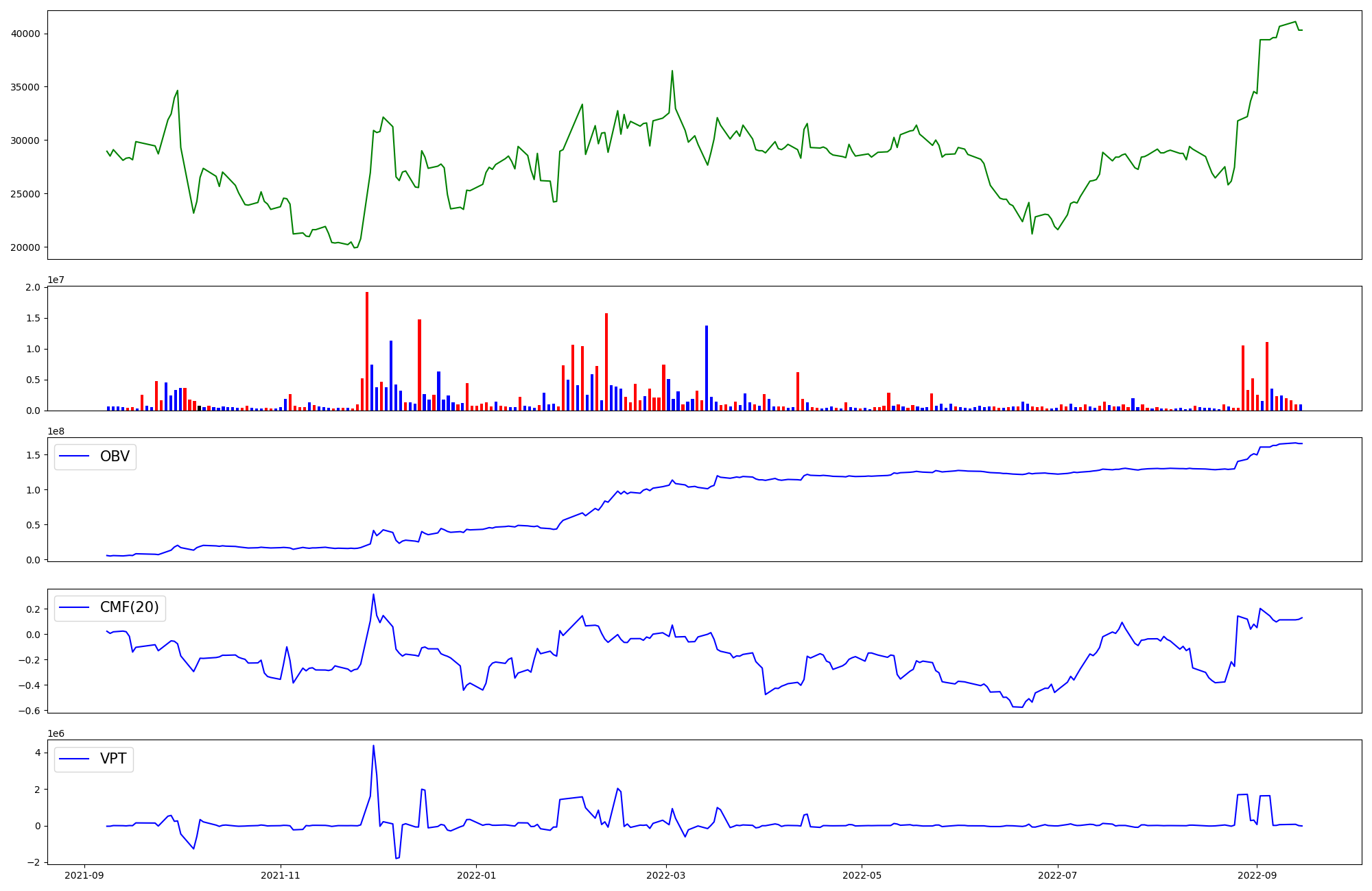 | OBV | CMF | VPT | |